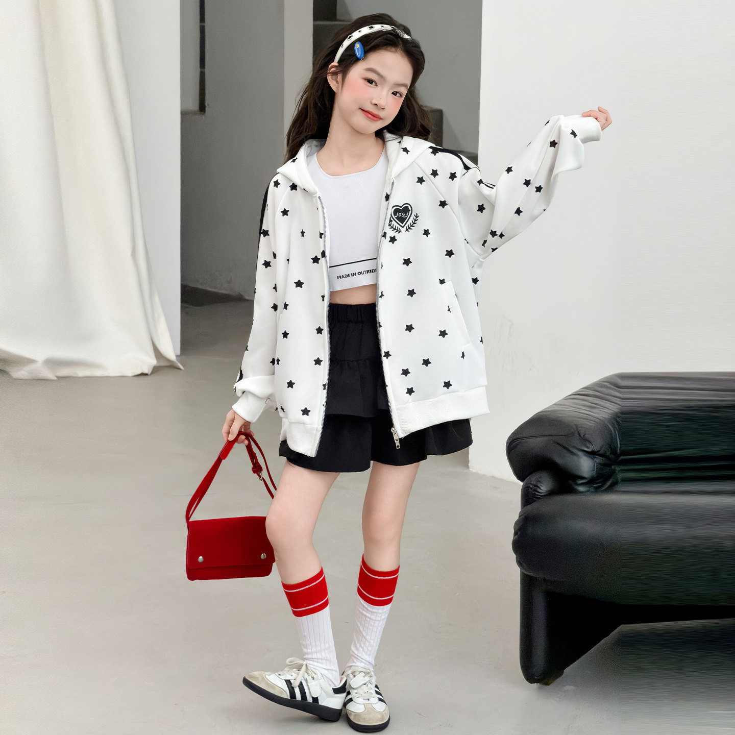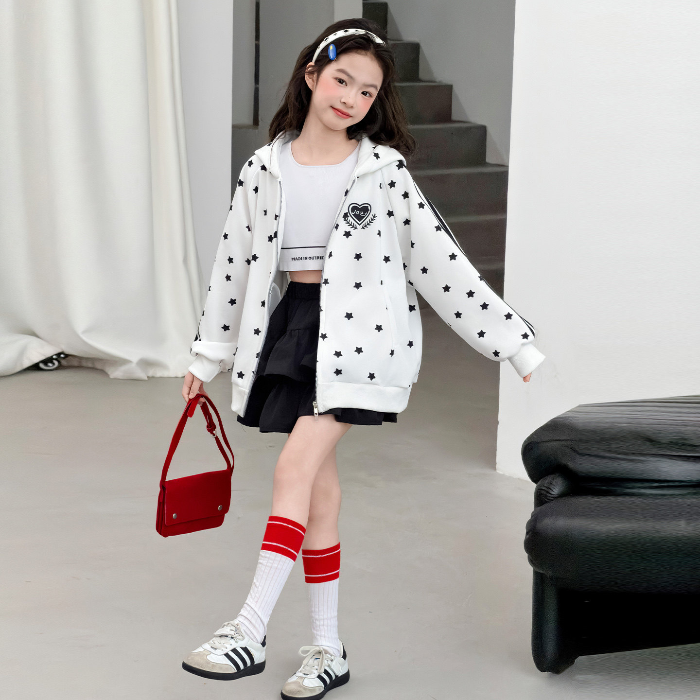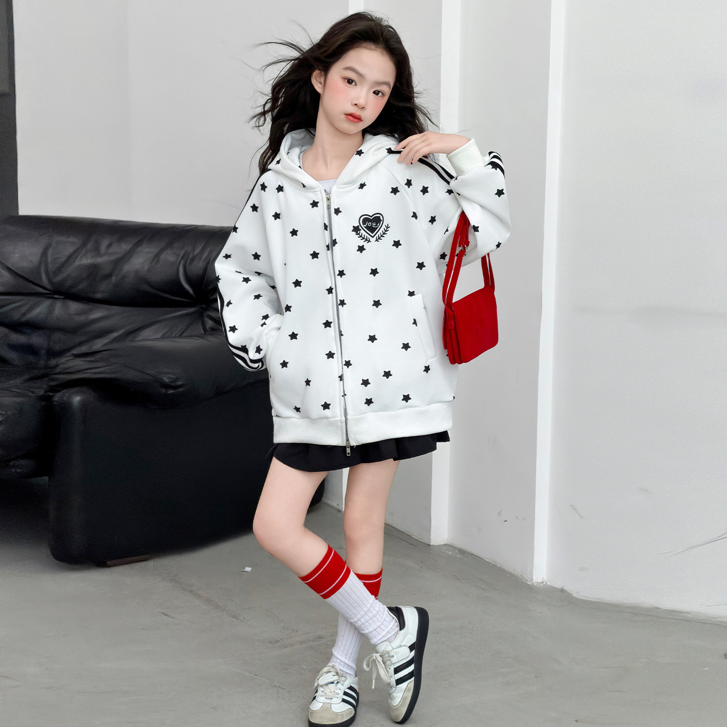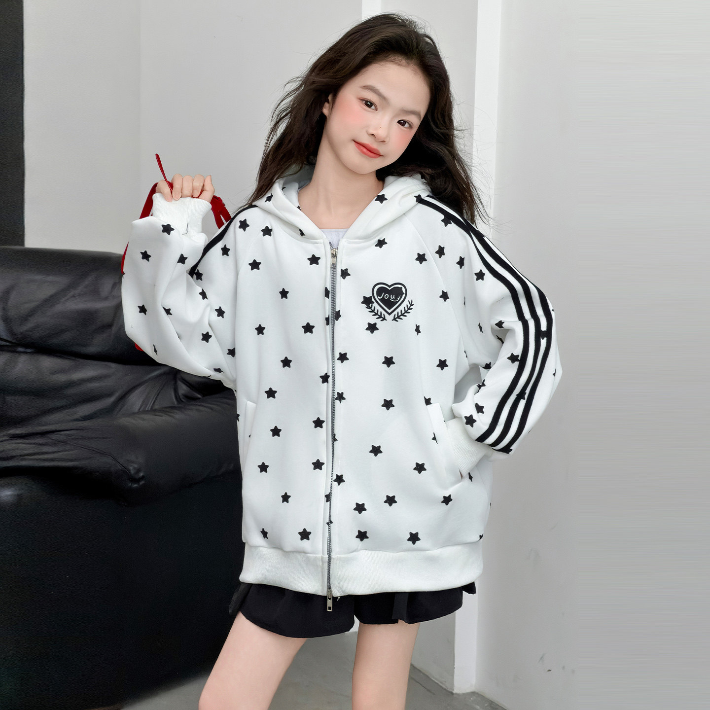 初中生女孩外套春装女童连帽上衣春季洋气时髦女大童衣服春款儿童