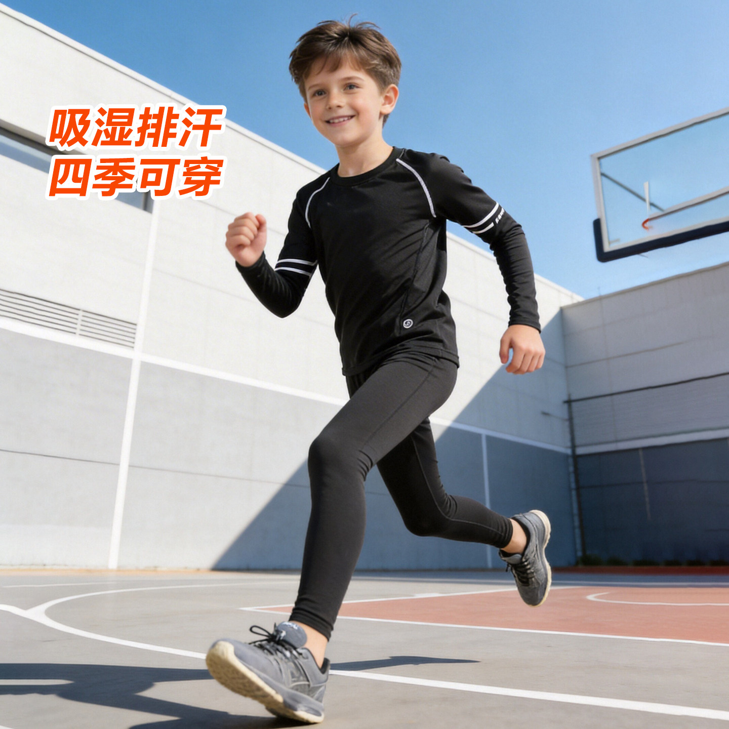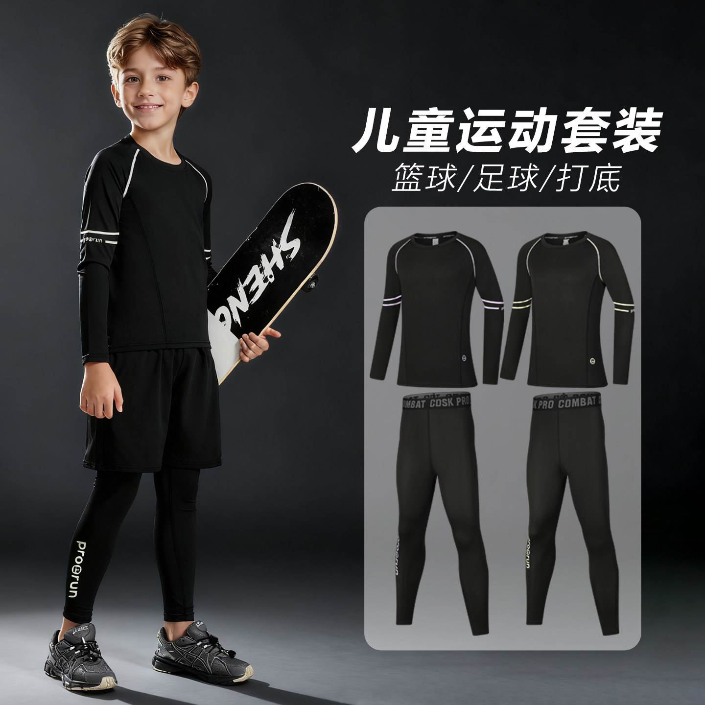 儿童运动套装长袖紧身衣速干吸汗篮球训练服高弹健身服