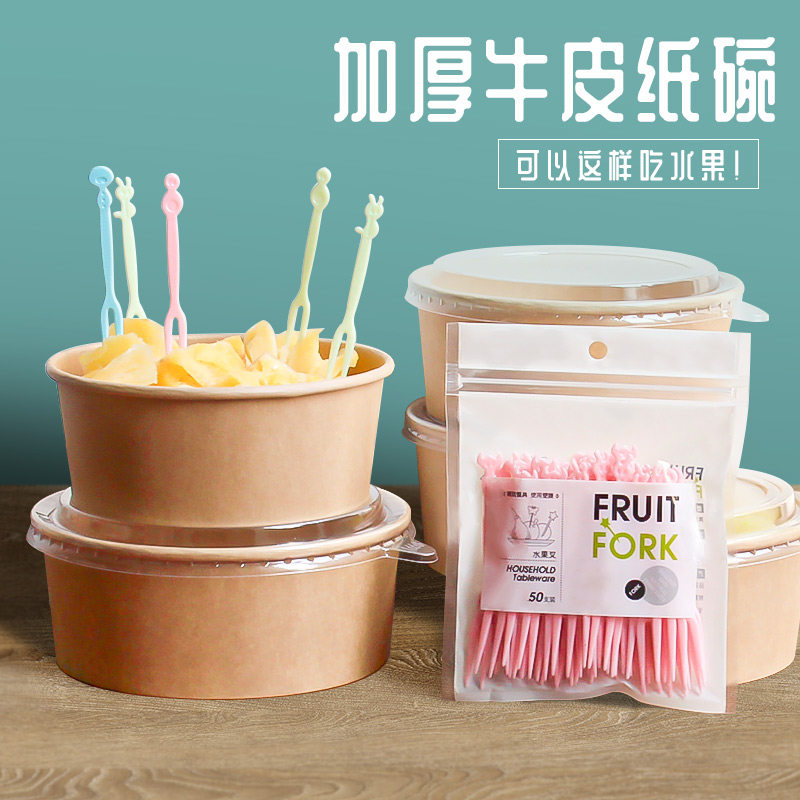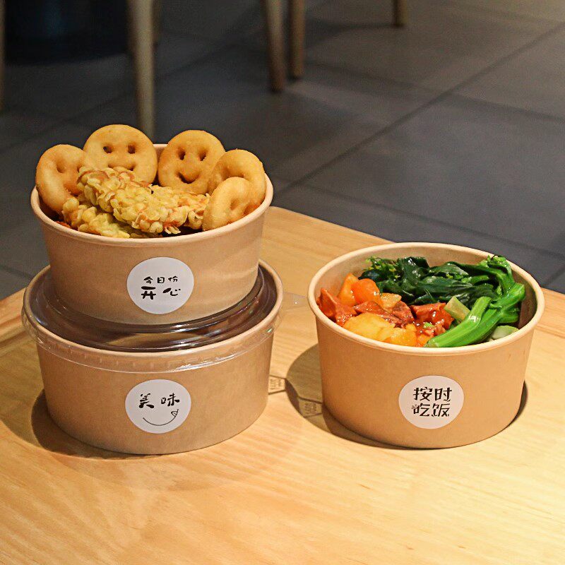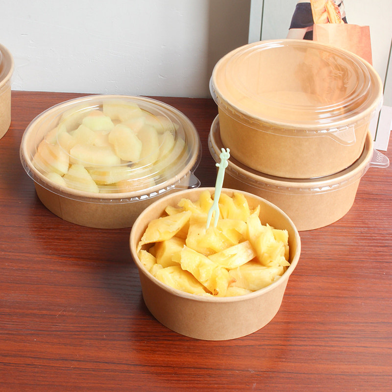 牛皮纸打包盒一次性纸碗饭碗野餐盒沙拉碗纸饭盒外卖快餐盒水果盒