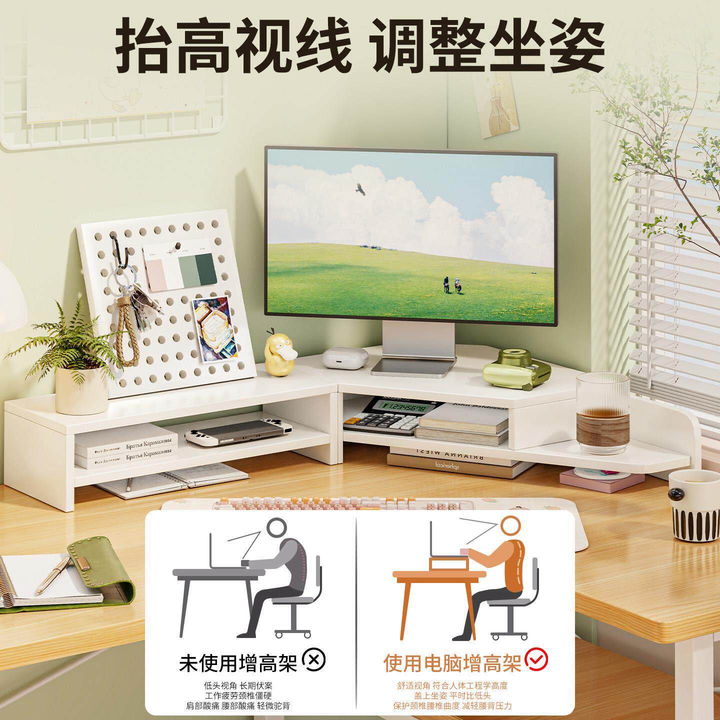 转角电脑增高架台式显示器抬高支架屏幕垫高底座办公桌拐角置物架