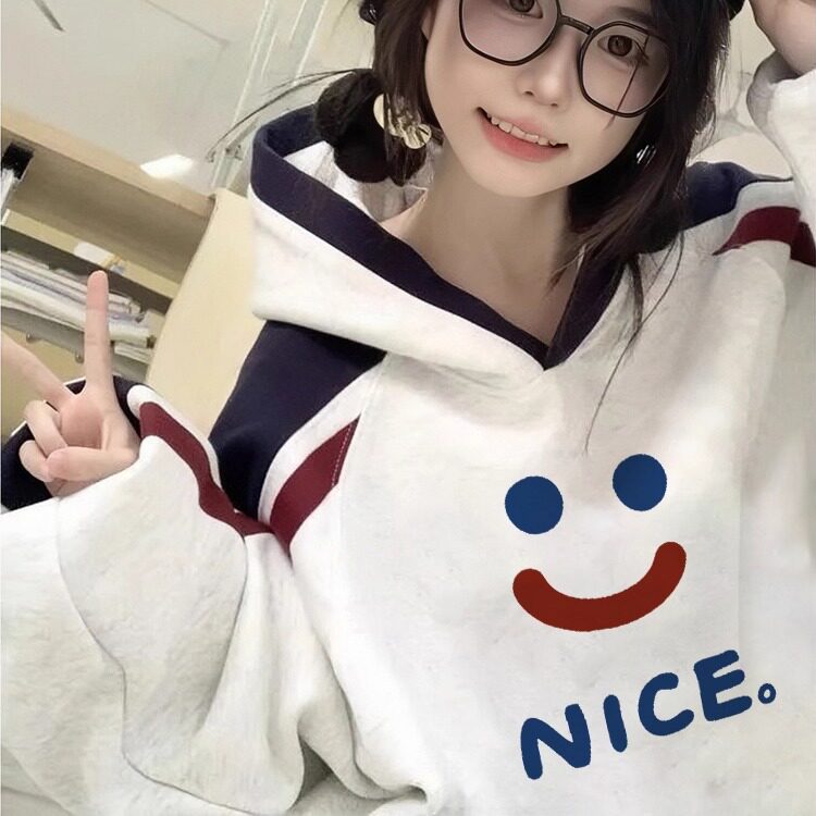 高级感超好看宽松外套女秋冬加绒加厚2025新款撞色拼接连帽卫衣潮