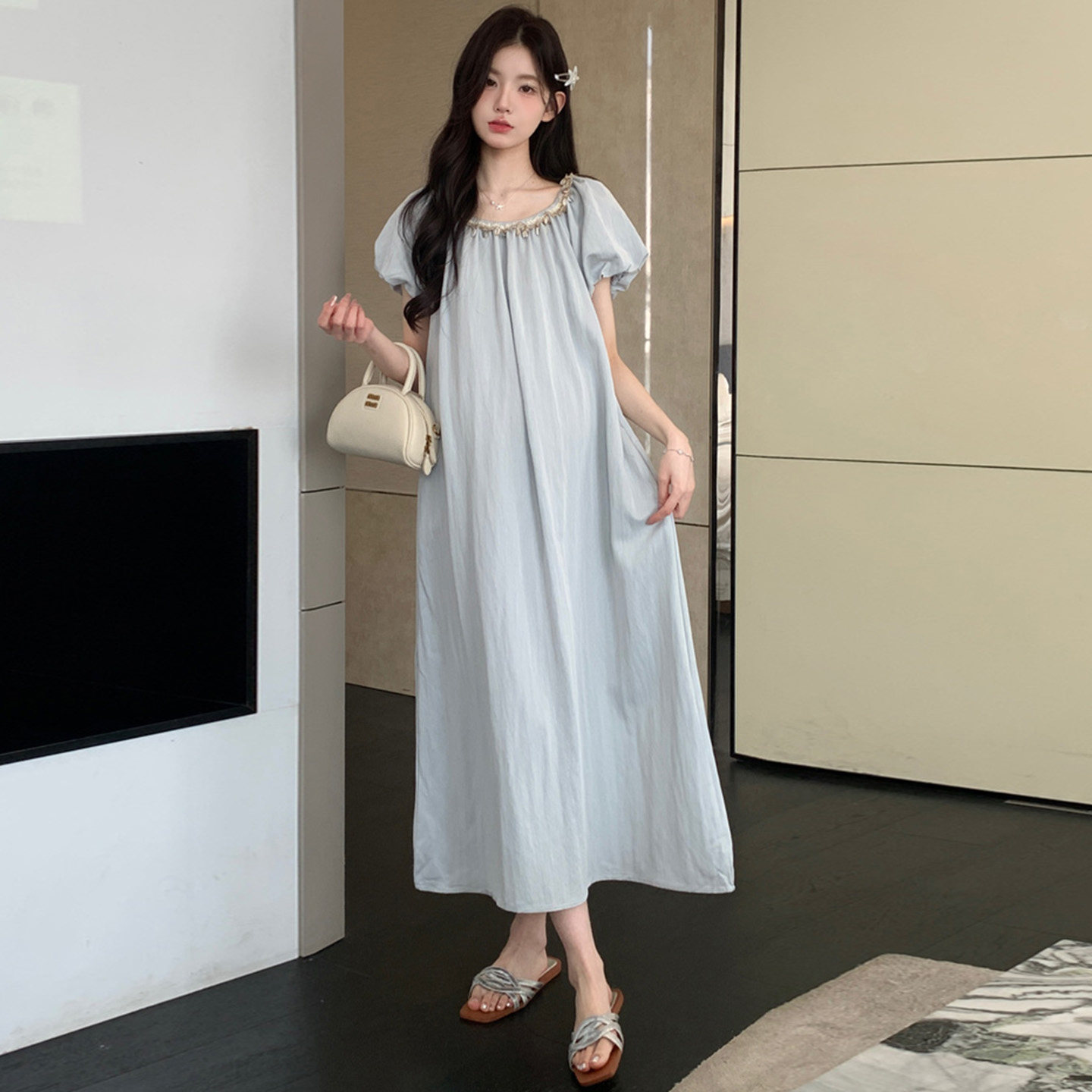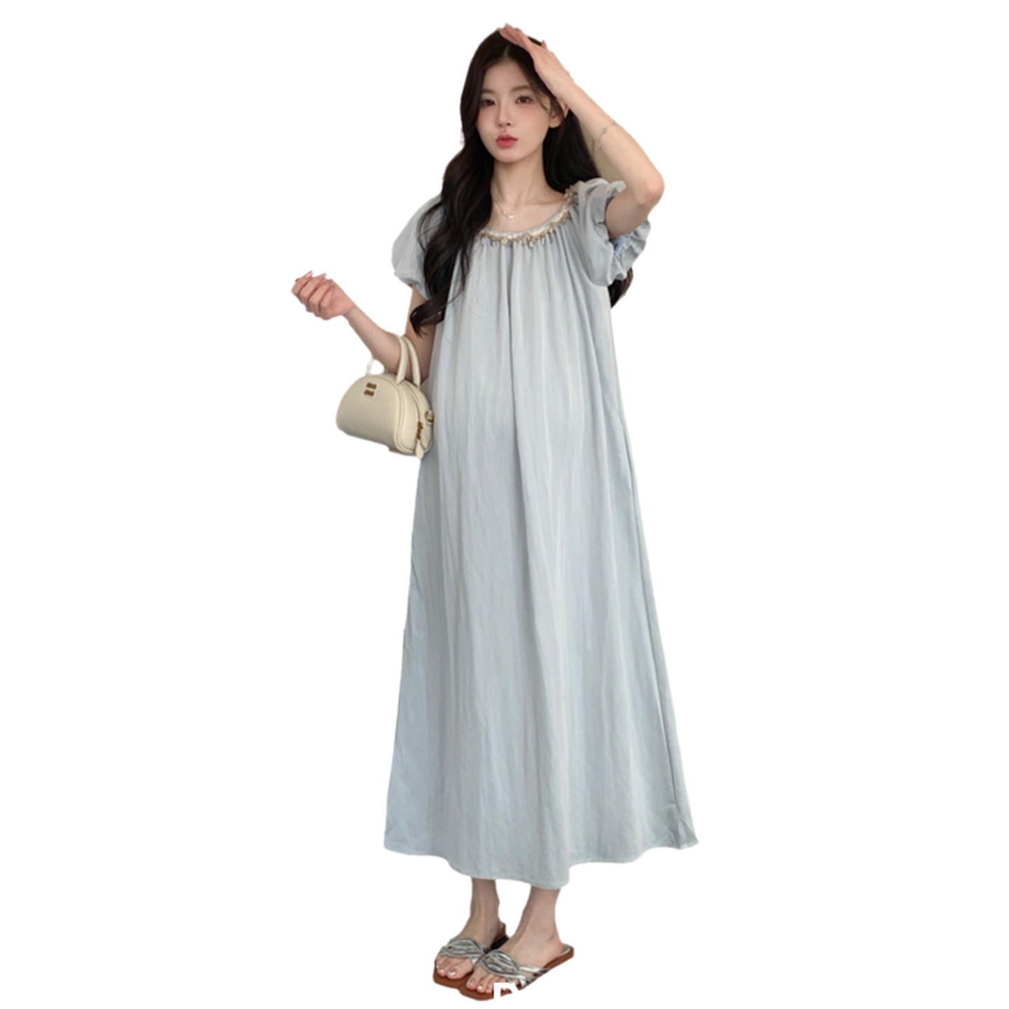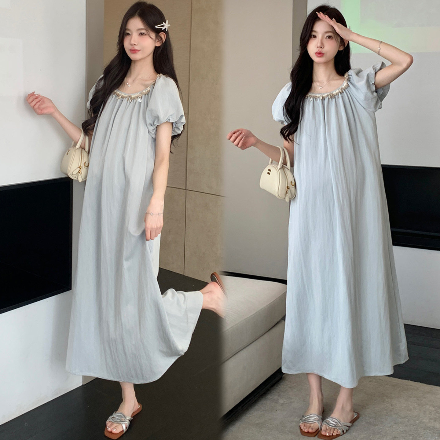 2026孕妇夏季连衣裙中长款过膝宽松遮肚长裙洋气泡泡袖孕期裙子女