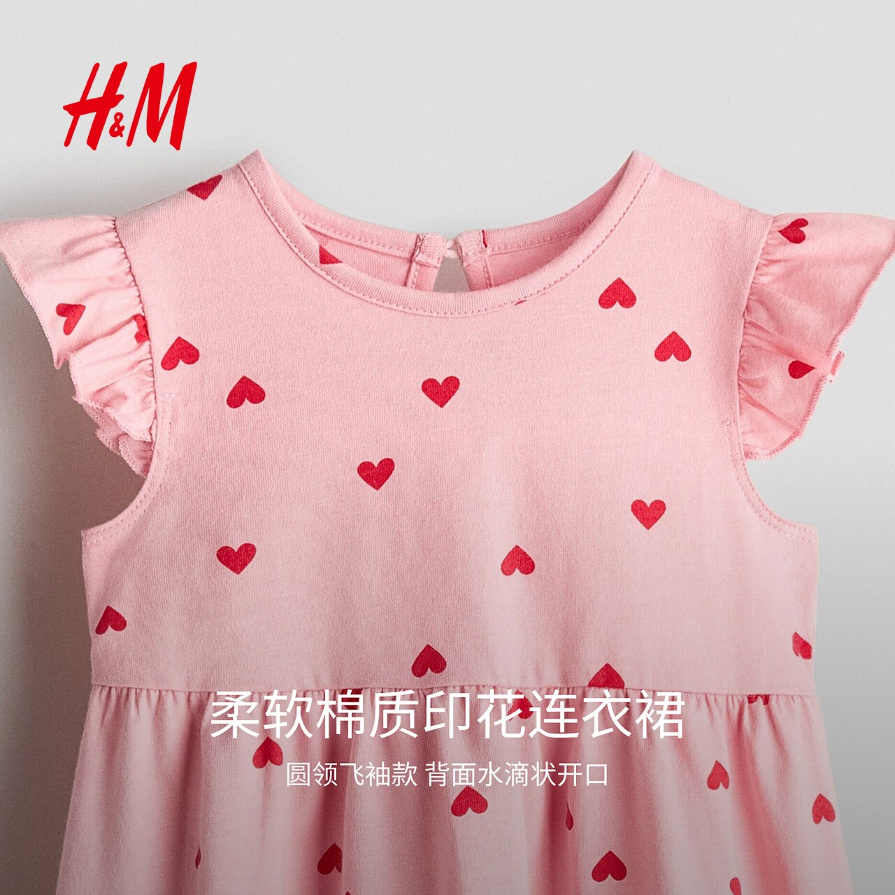 HM童装女婴裙子2026春季新款棉质飞袖印花洋气连衣裙1315438