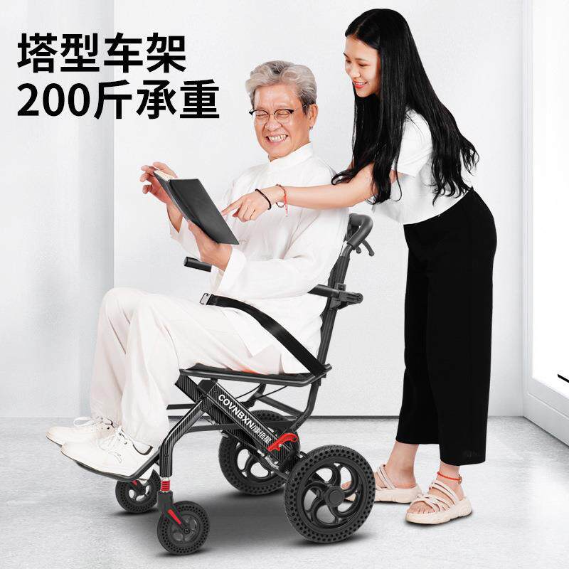 轮椅便携式超轻便折叠小型老人专用旅行便携式手推车老年人代步车