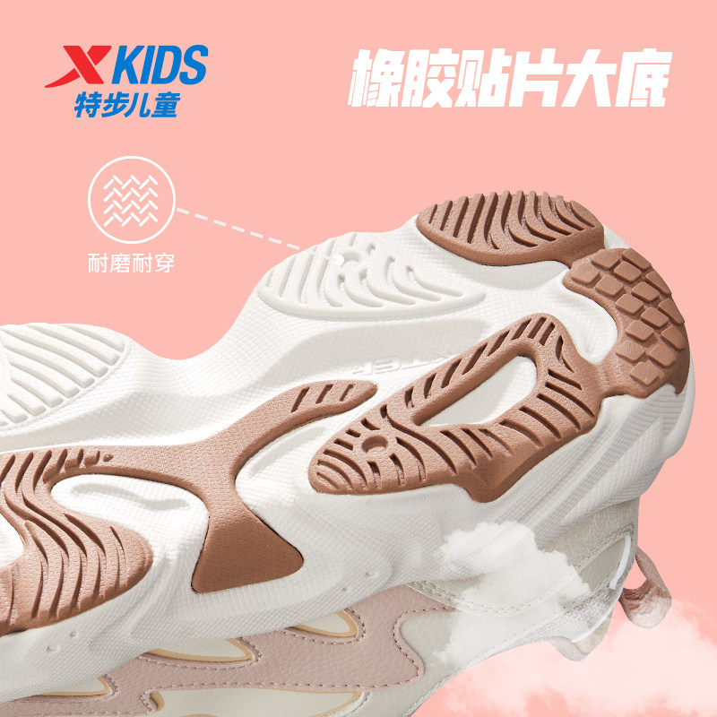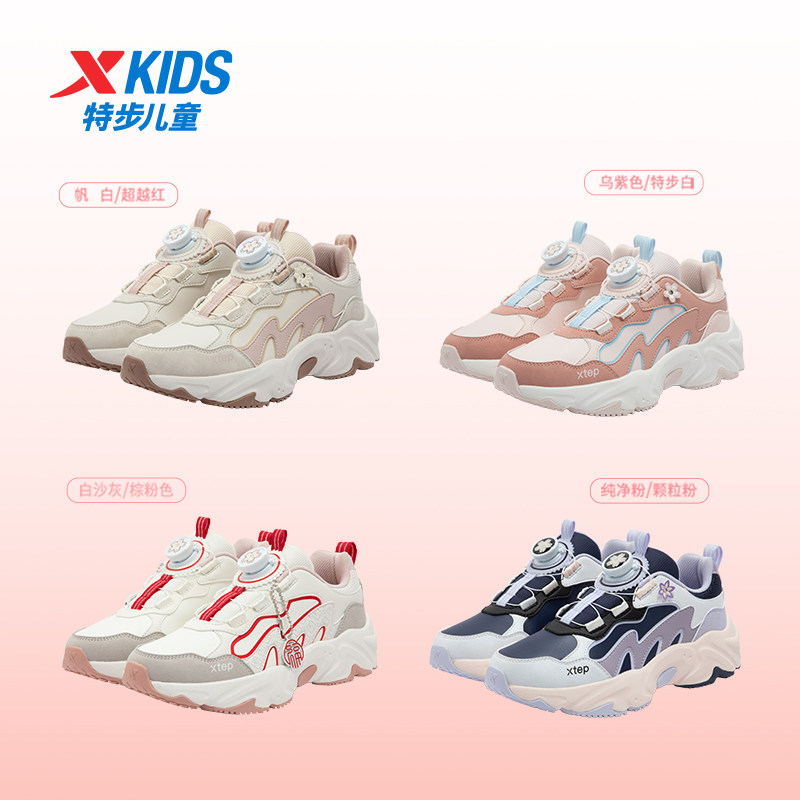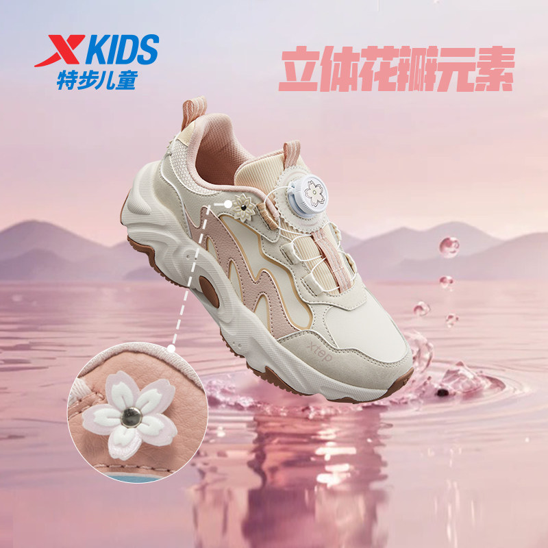 特步女童鞋2025春秋新款皮面新款儿童女款运动鞋中大童休闲老爹鞋