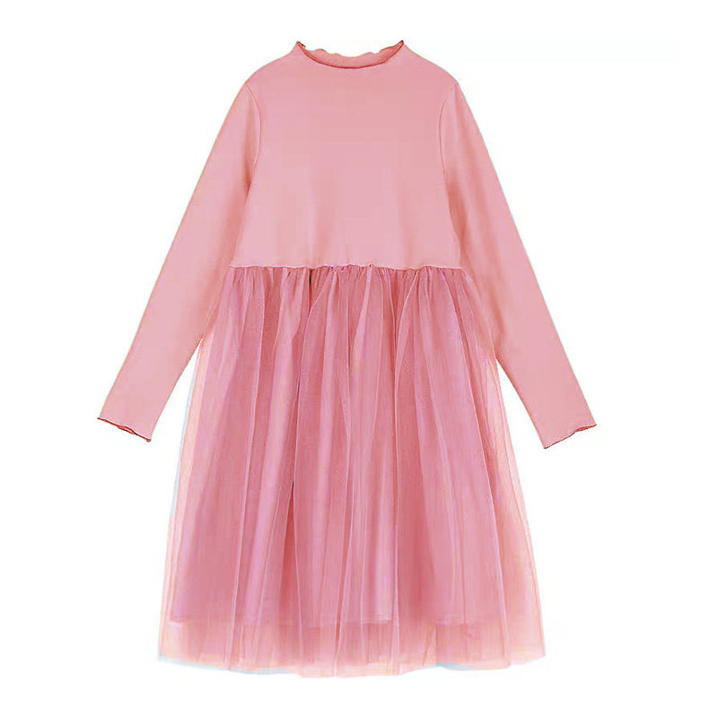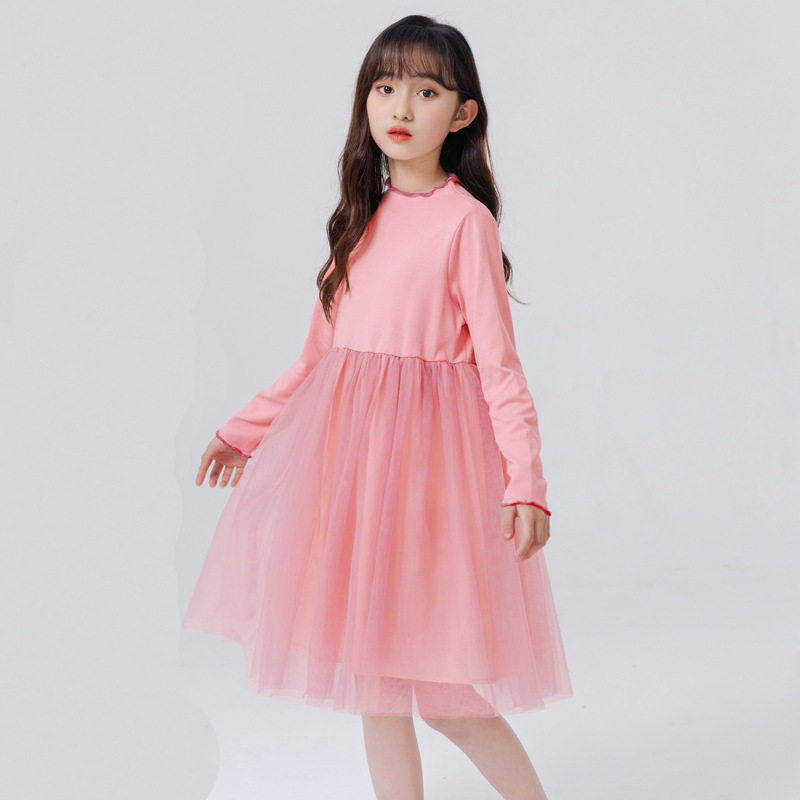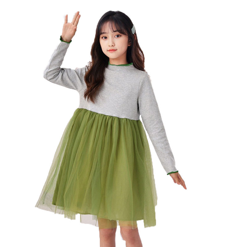 女童连衣裙网纱早春新款时尚拼色儿童连衣裙女孩裙中大童中长裙