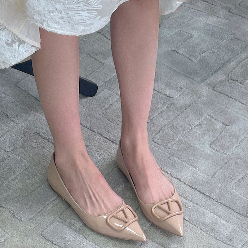 2025年新款春夏不累脚裸色内增高尖头平底鞋浅口鞋子百搭通勤单鞋