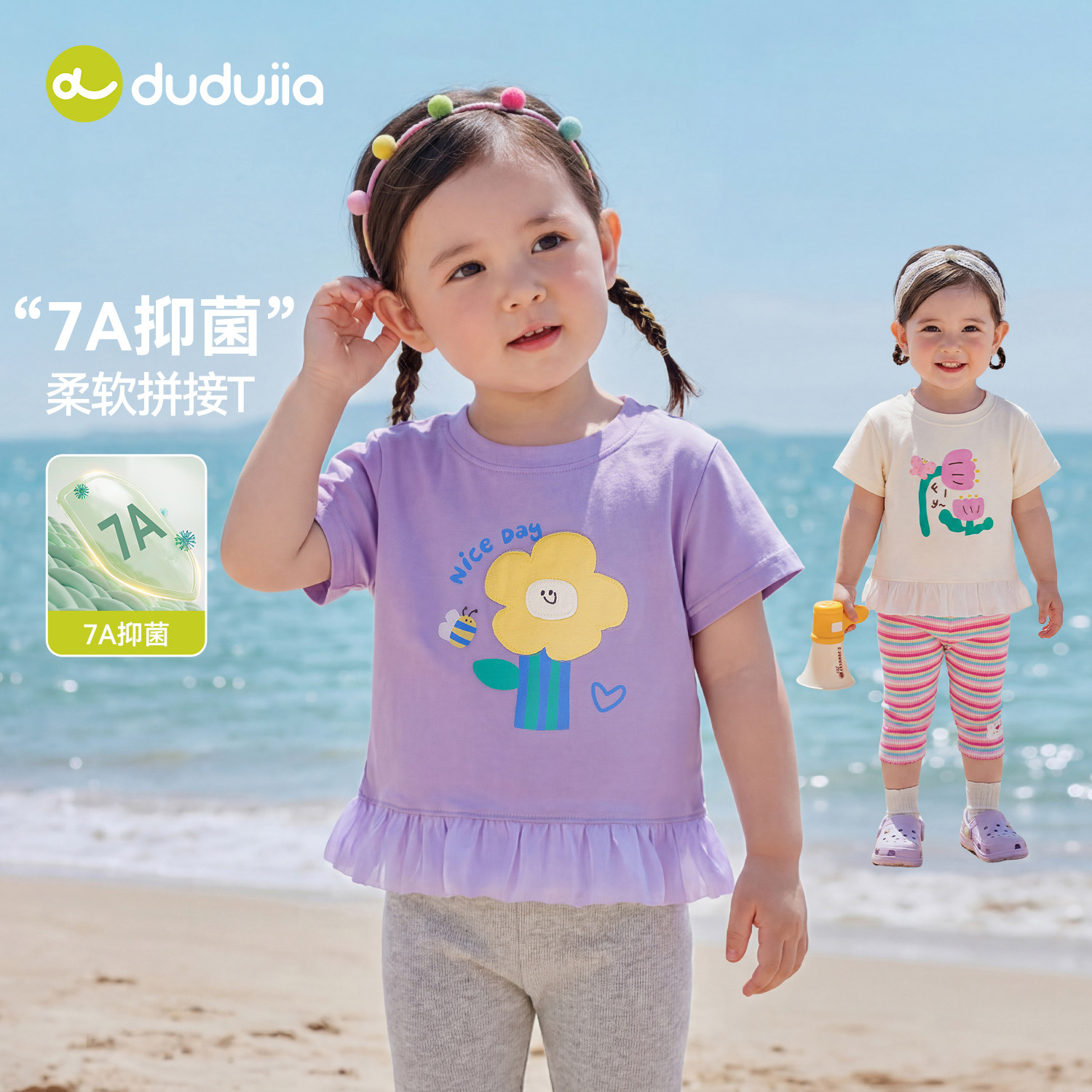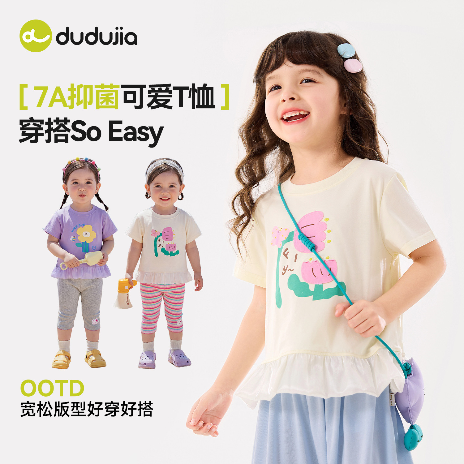 【7A抑菌】嘟嘟家儿童T恤女童夏季短袖上衣宝宝打底女孩白色童装