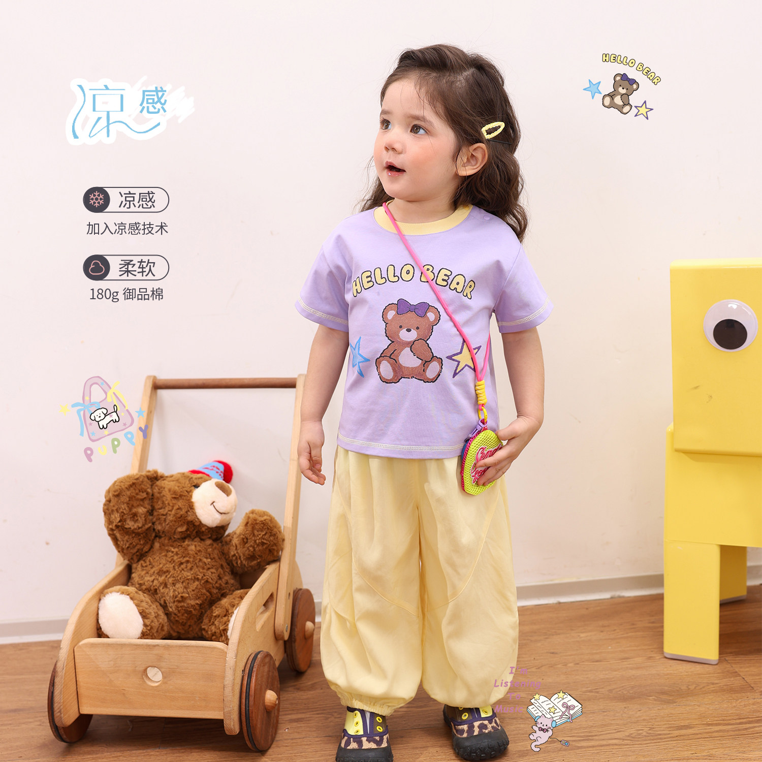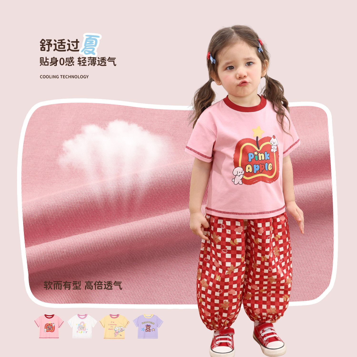 小o爸女婴童女宝宝t恤短袖2026夏季新款婴儿圆领抗菌数码印花上衣