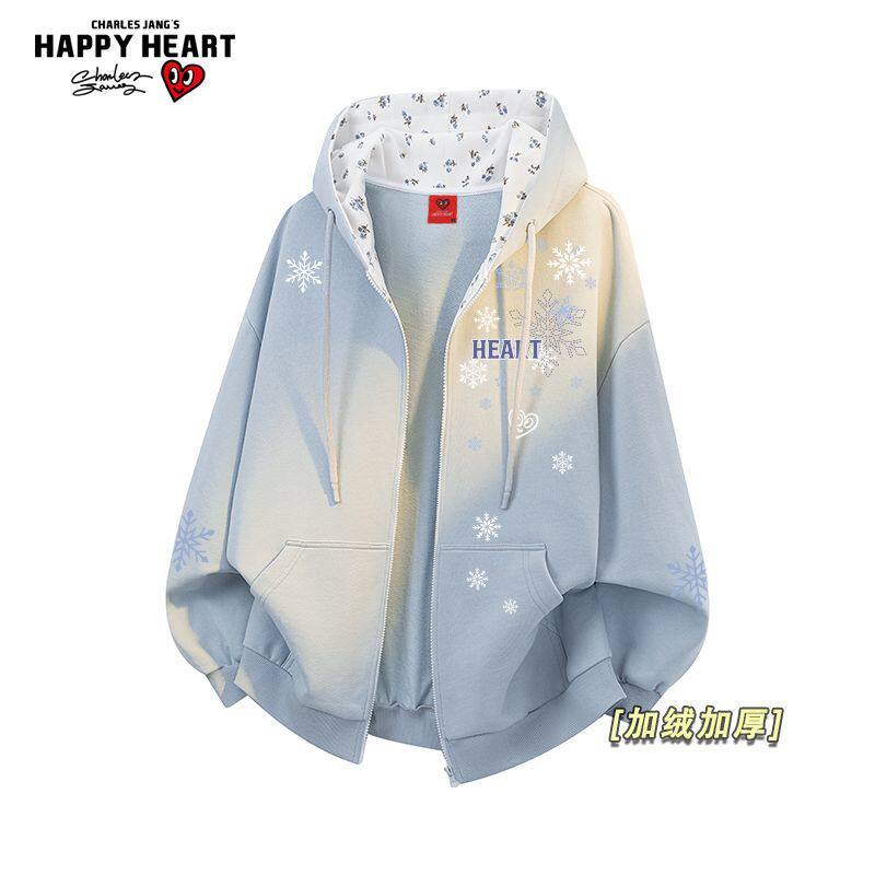 311线报网描述:查尔斯桃心雪花印花开衫卫衣男女冬季新款加