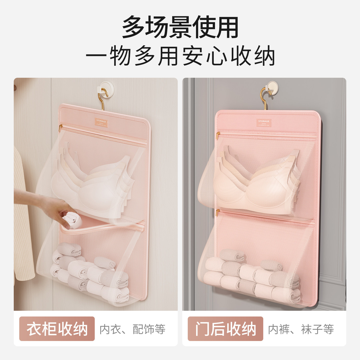 内衣收纳挂袋悬挂式收纳门后置物袋学生宿舍衣柜袜子内裤收纳神器