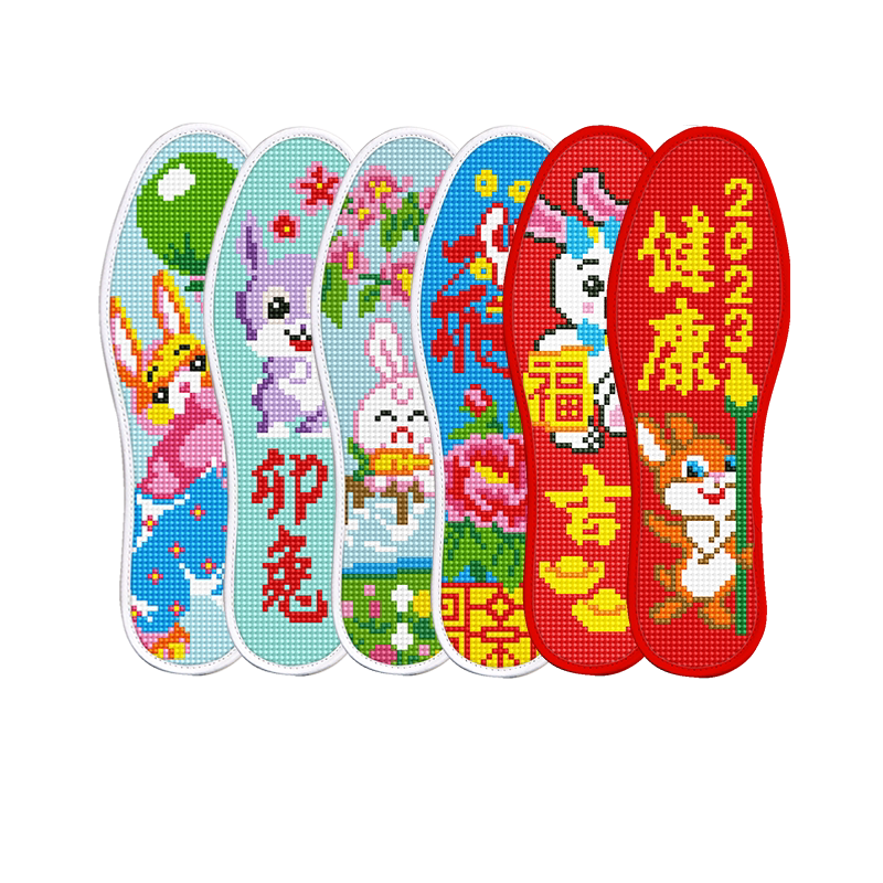 新款十字绣鞋垫半成品手工刺绣加厚本命年兔年情侣卡通吸汗透气