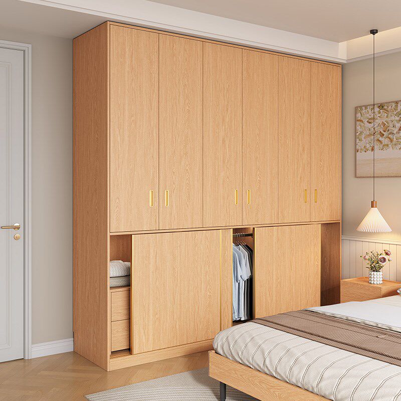 定制推拉门橡木衣柜原木风新款分段式平开N推拉一体主卧储物衣橱