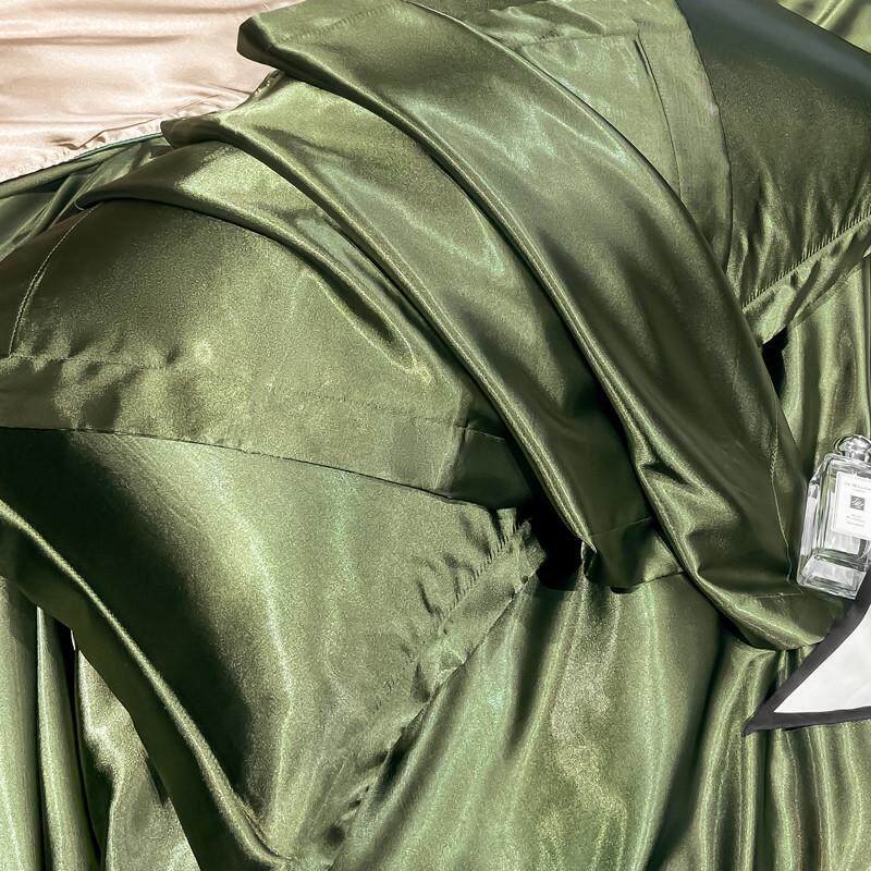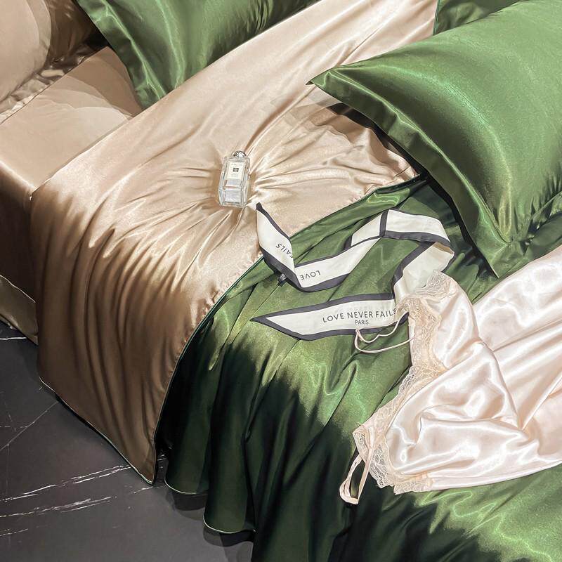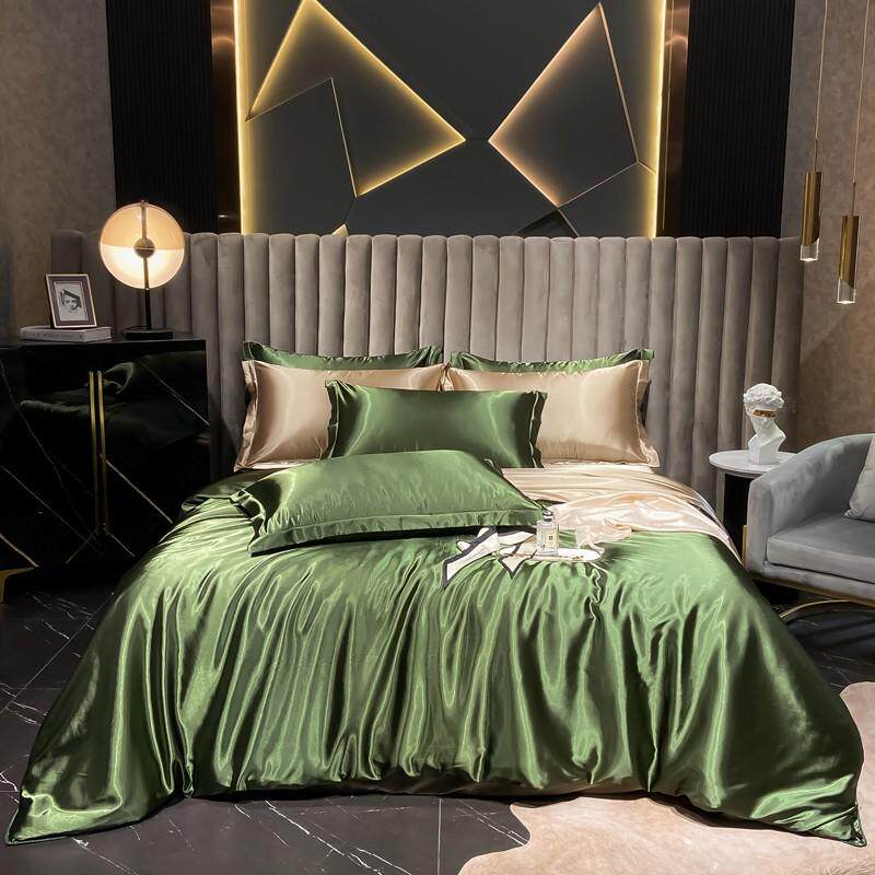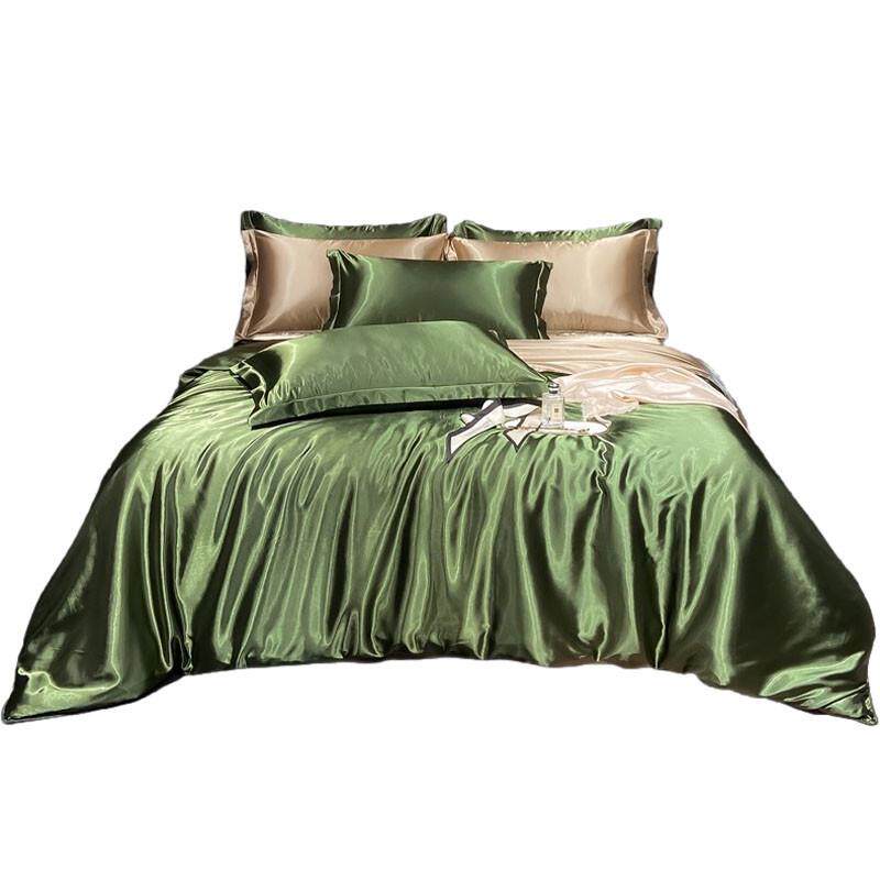 春季真丝四件套绿色冰丝绸缎桑蚕丝天丝简约纯色床单被套床上用品