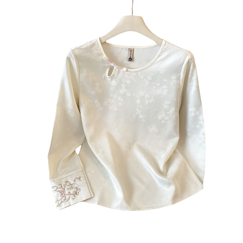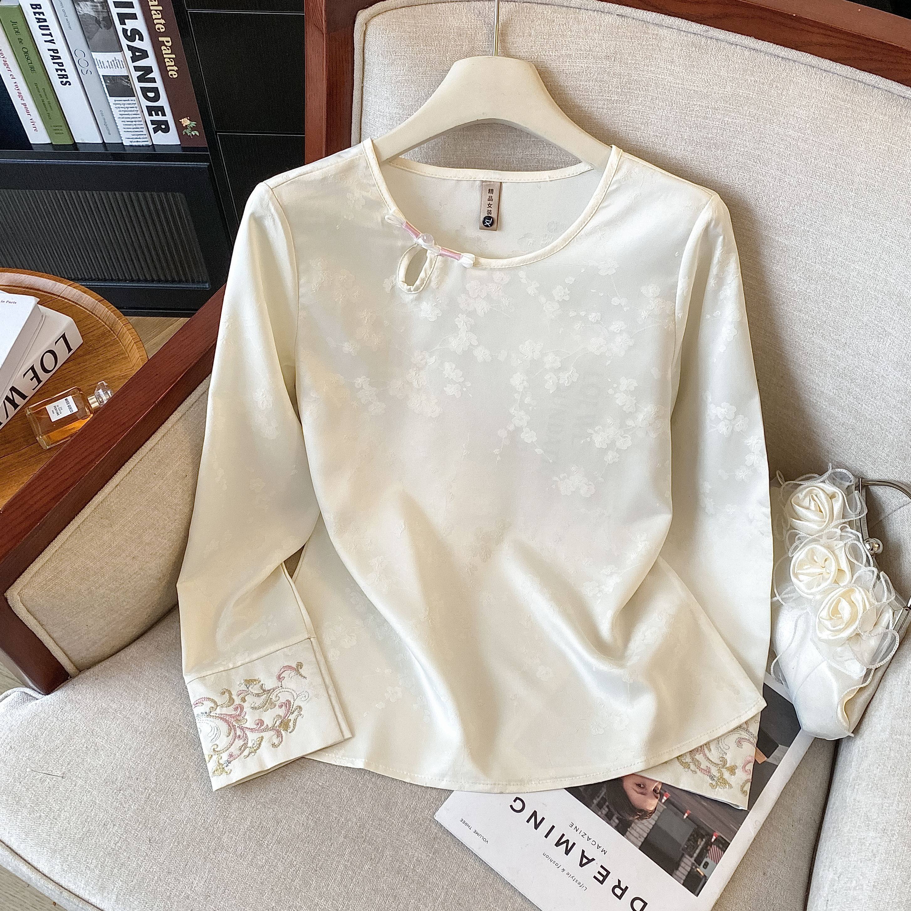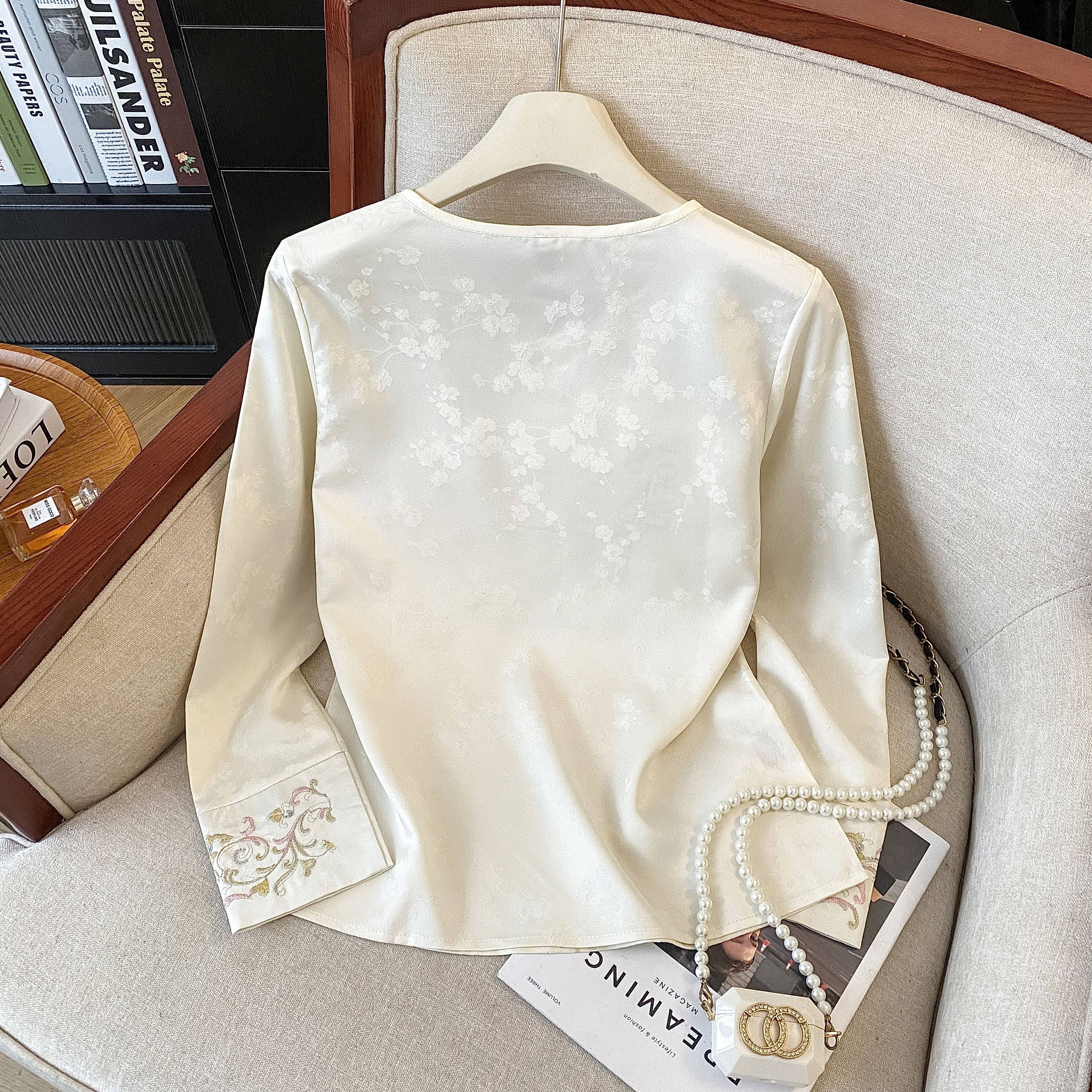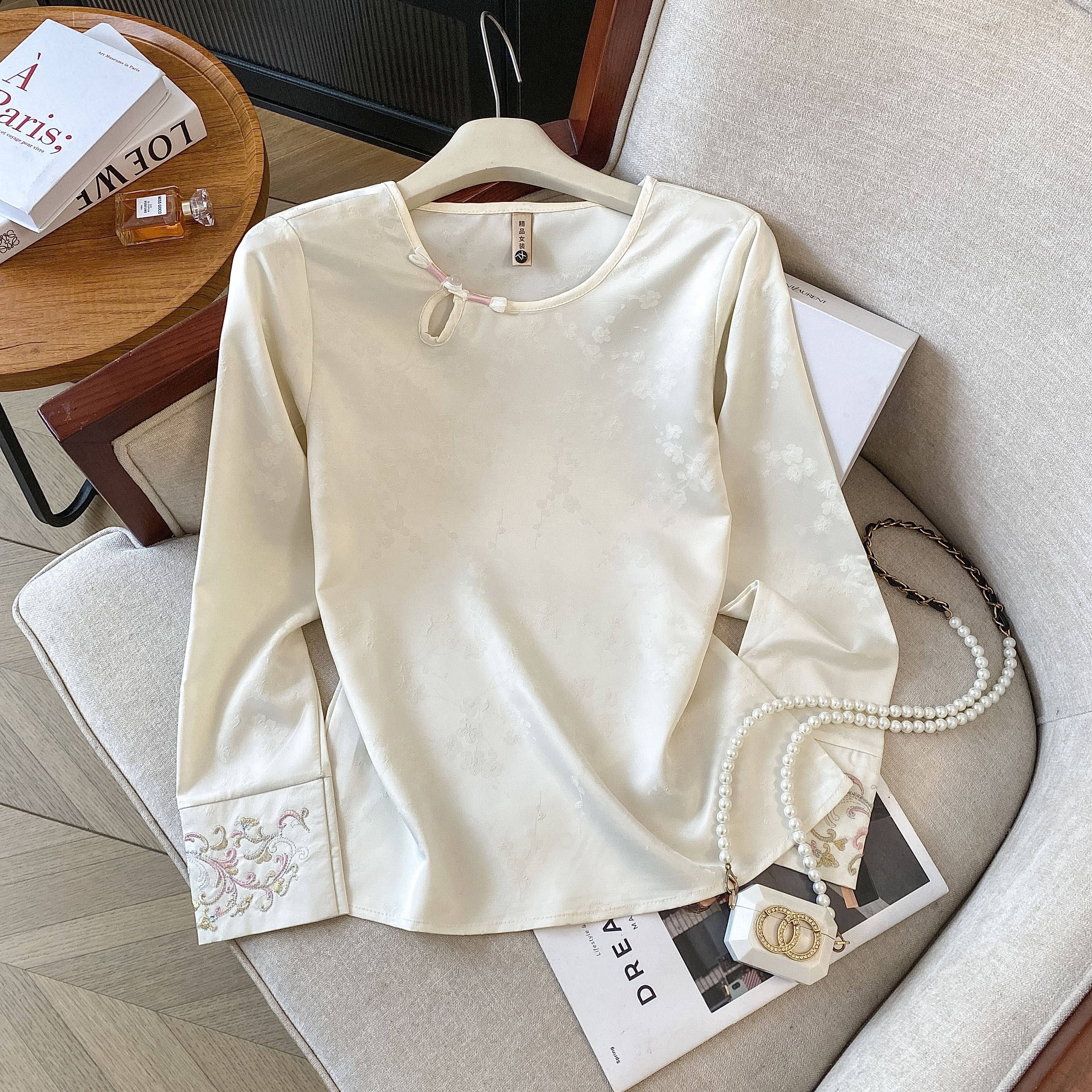 新中式衬衫女秋季2026新款国风真丝打底衫大码刺绣衬衣配马甲上衣