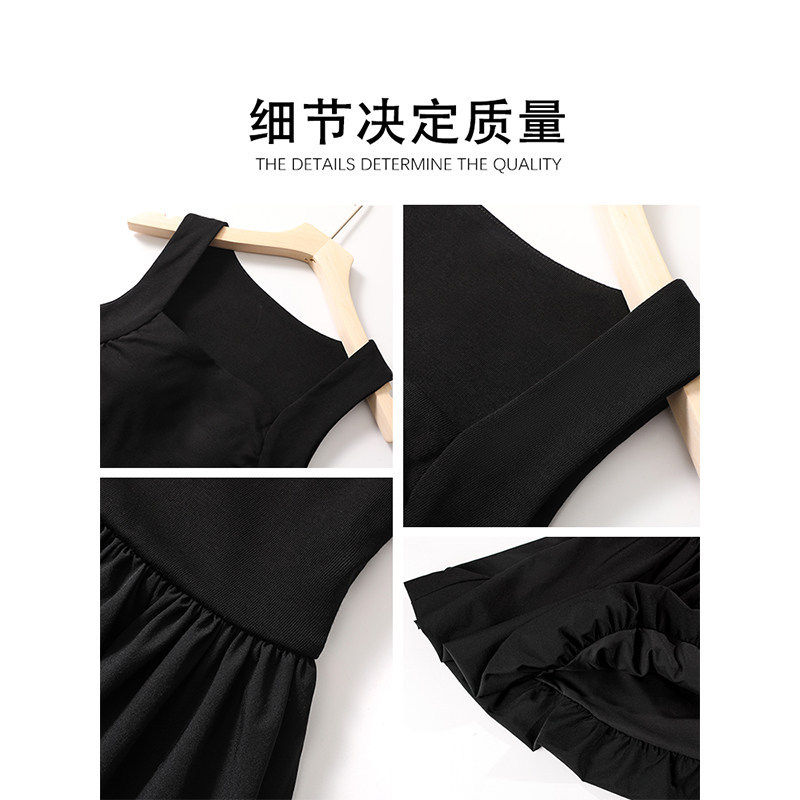 黑色收腰吊带连衣裙女夏日漂亮绝美小黑裙子蓬掐腰a字短款花苞裙