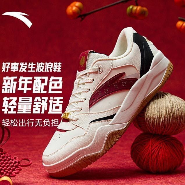 安踏王一博同款波浪鞋织物合成革牛反绒皮透气低帮板鞋男款轩