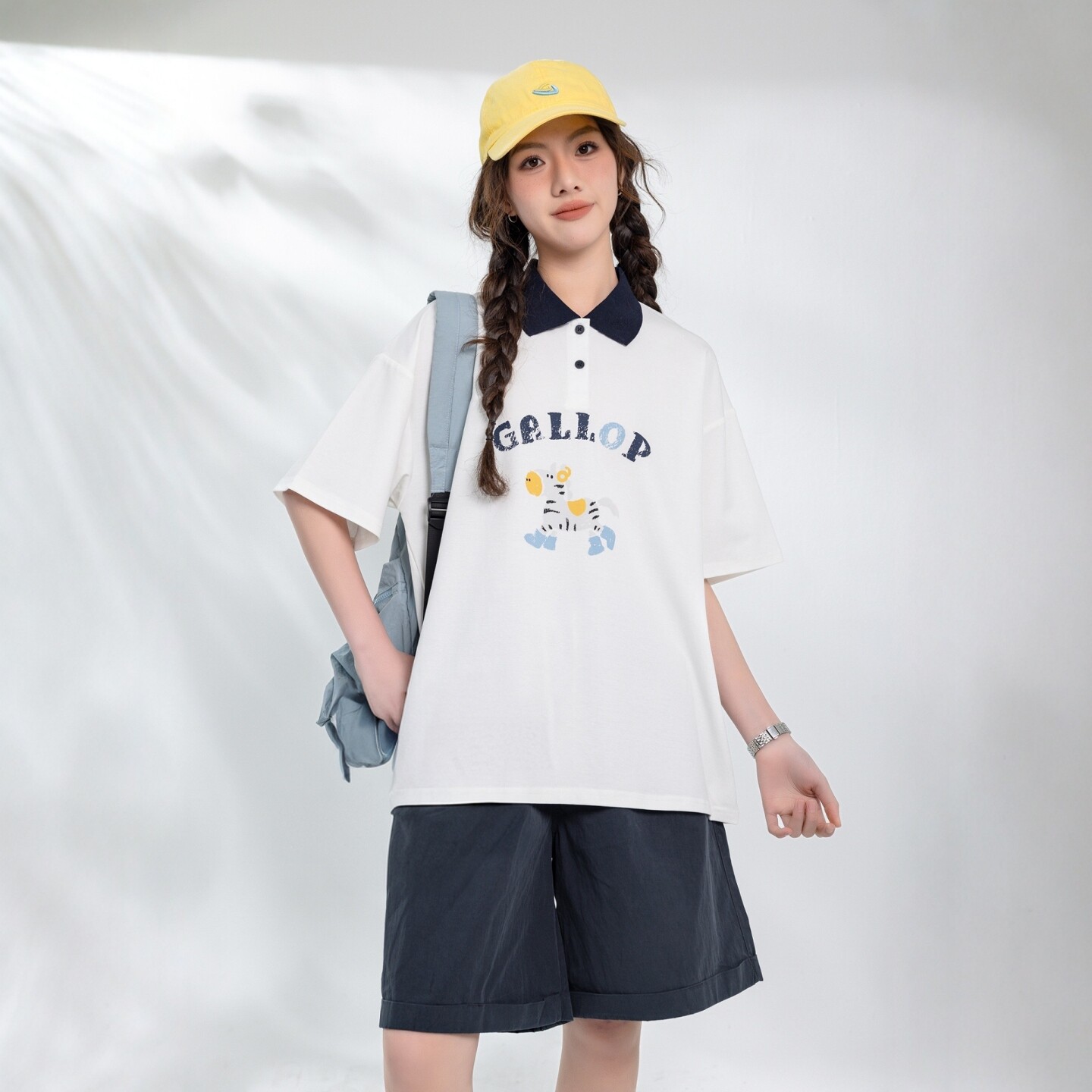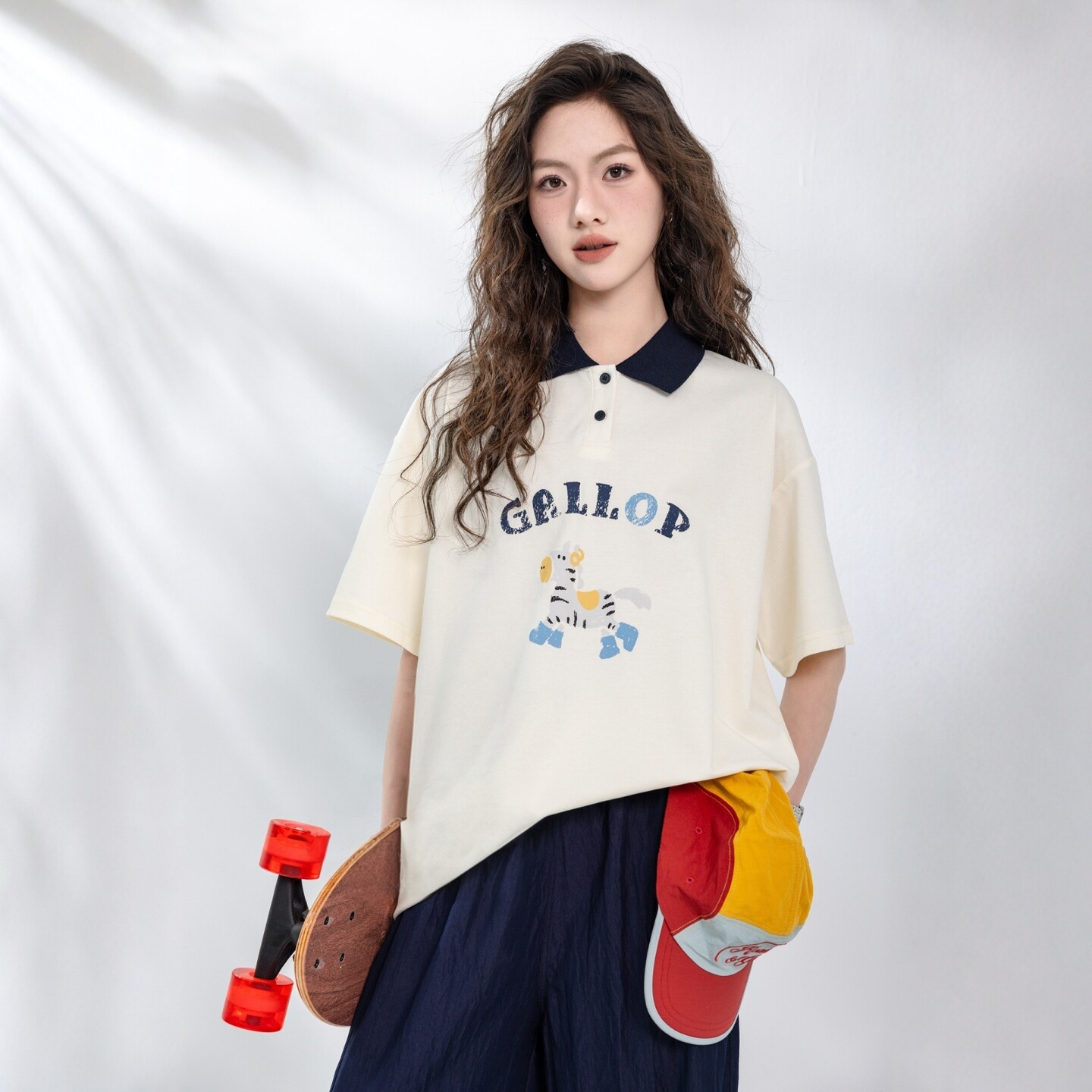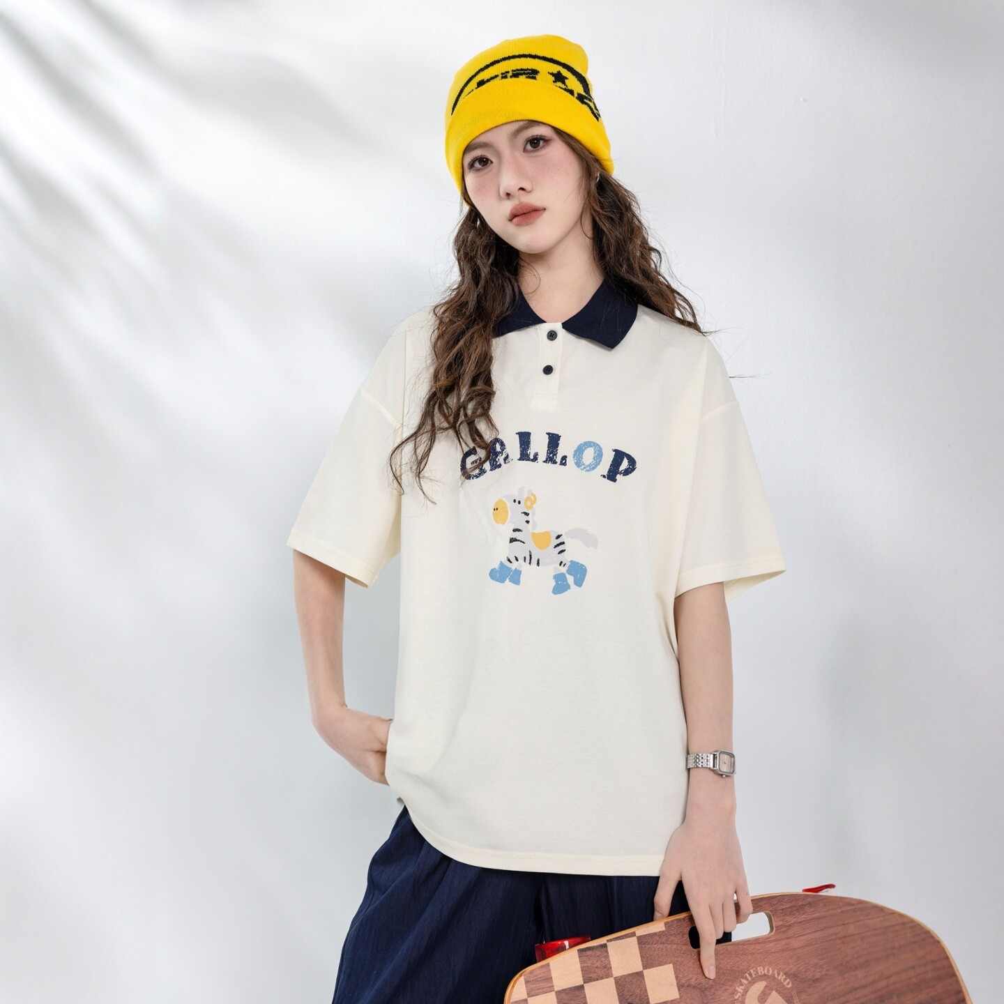 夏季新款短袖小方领T恤针织POLO衫香香小熊女生中大童青少年女装