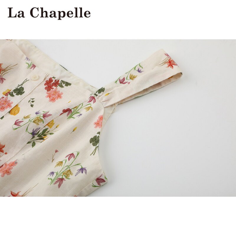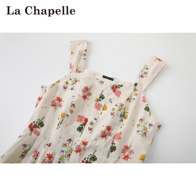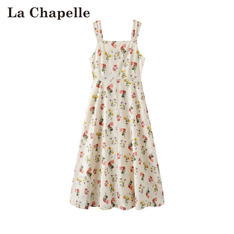 拉夏贝尔/La Chapelle春夏新款法式田园风碎花长款修身吊带连衣裙