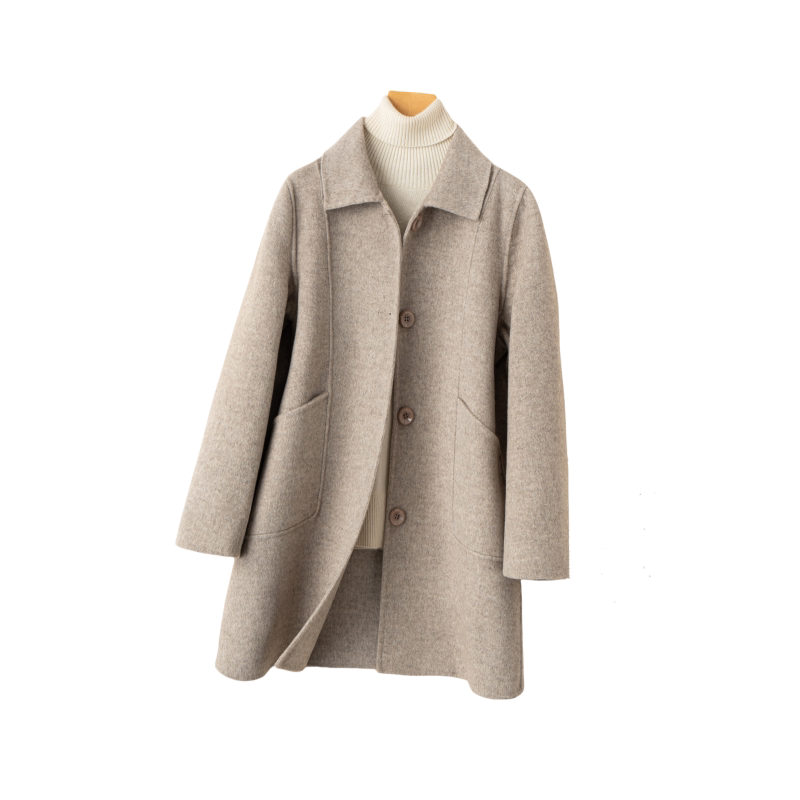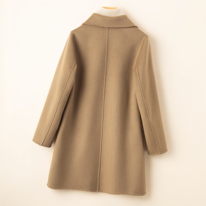 新款双面羊绒大衣女中长款赫本风娃娃领小个子羊毛呢外套翻领简约