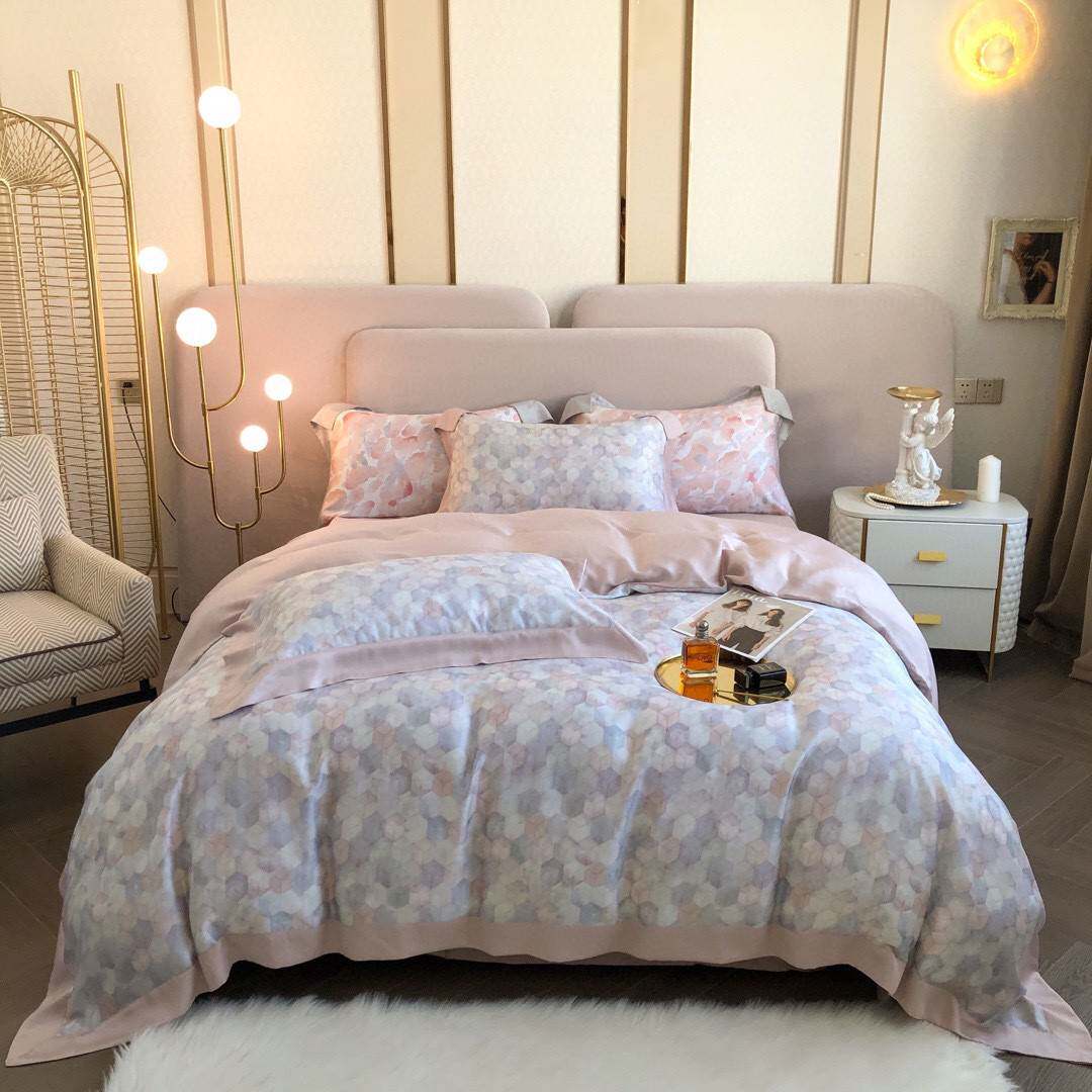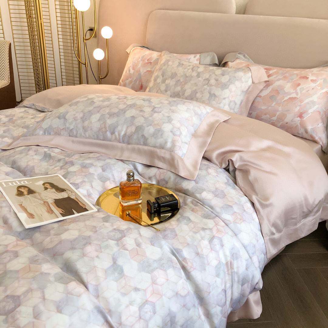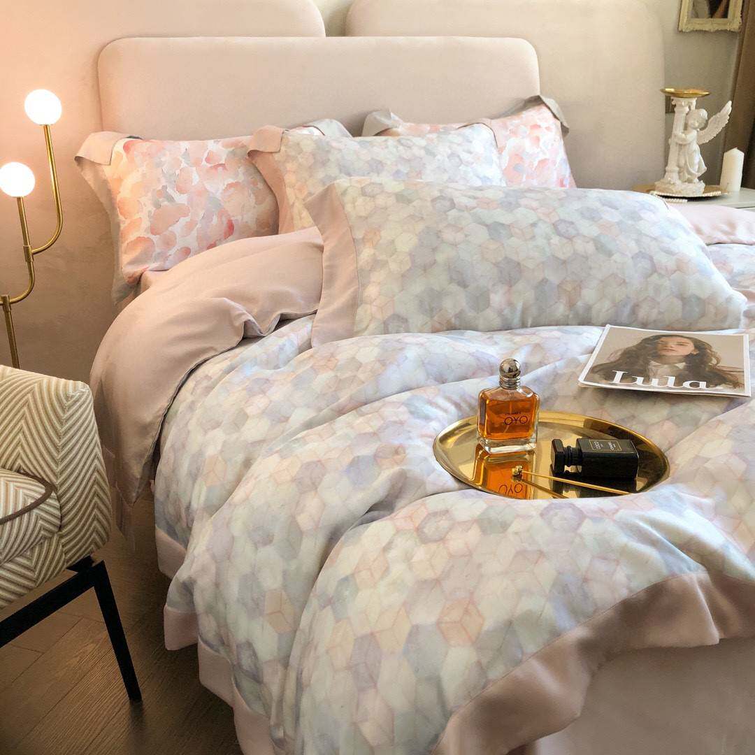1夏季裸睡奥地利兰精天丝四件套丝滑风冰丝粉色床单被套床上用品