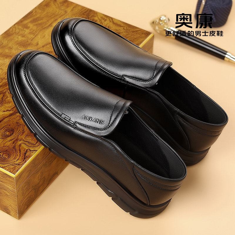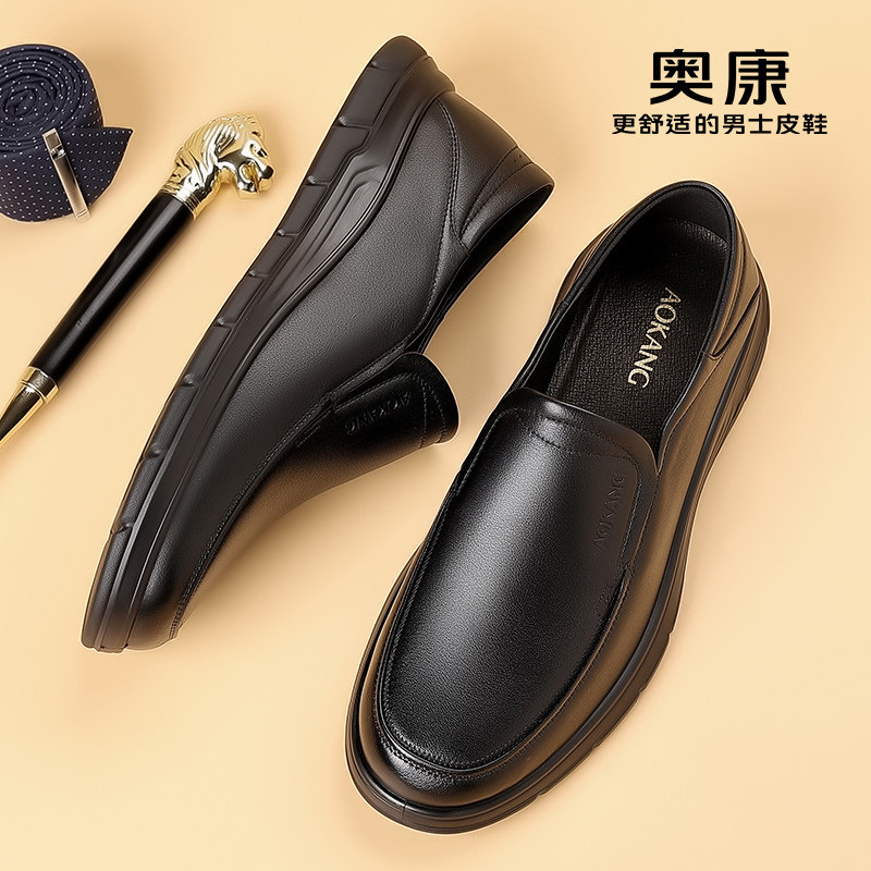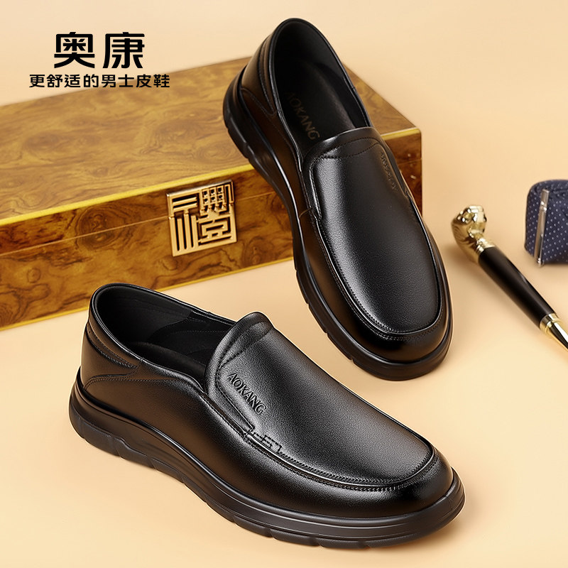 奥康男鞋2026春季新款休闲皮鞋男款真皮软底防滑一脚蹬中年爸爸鞋