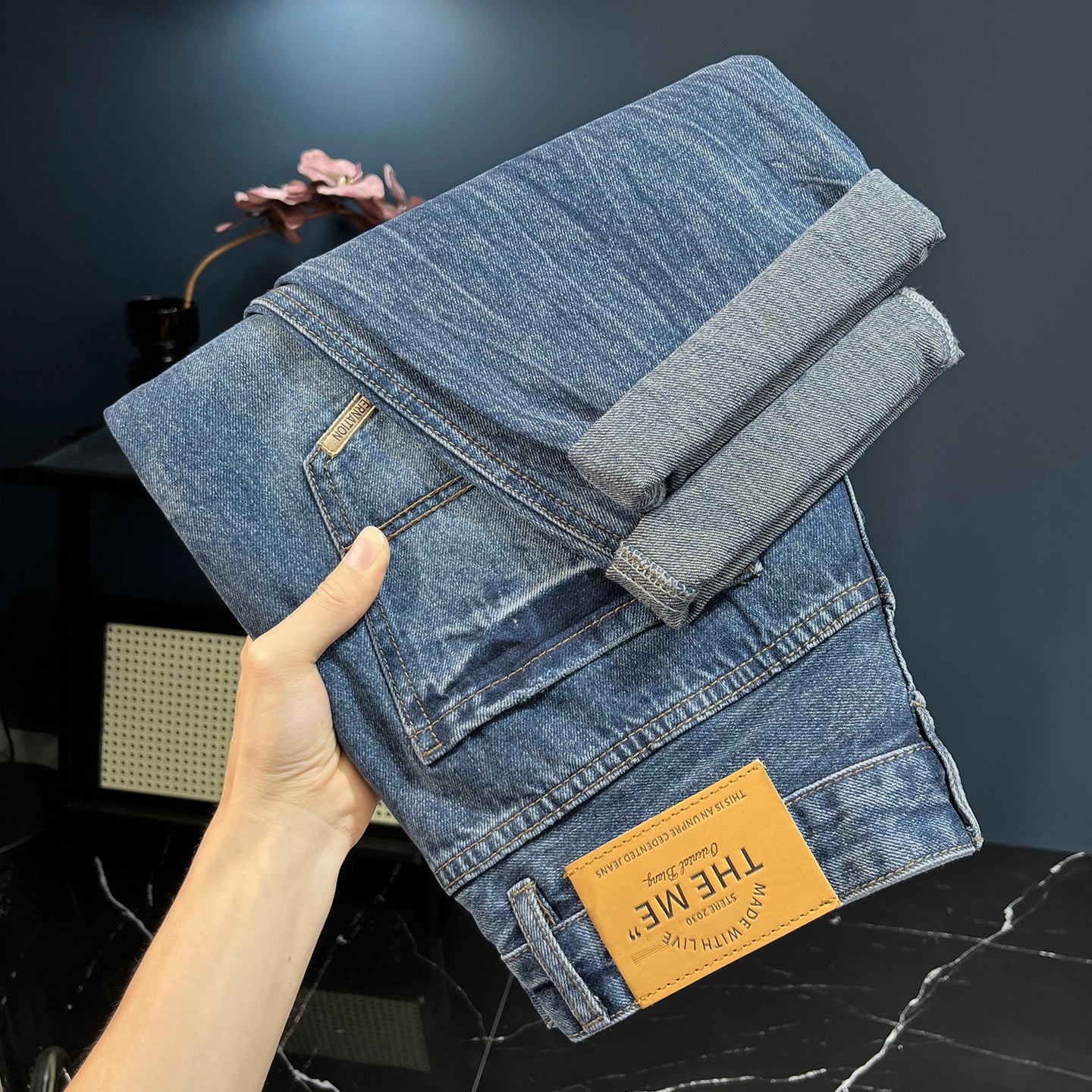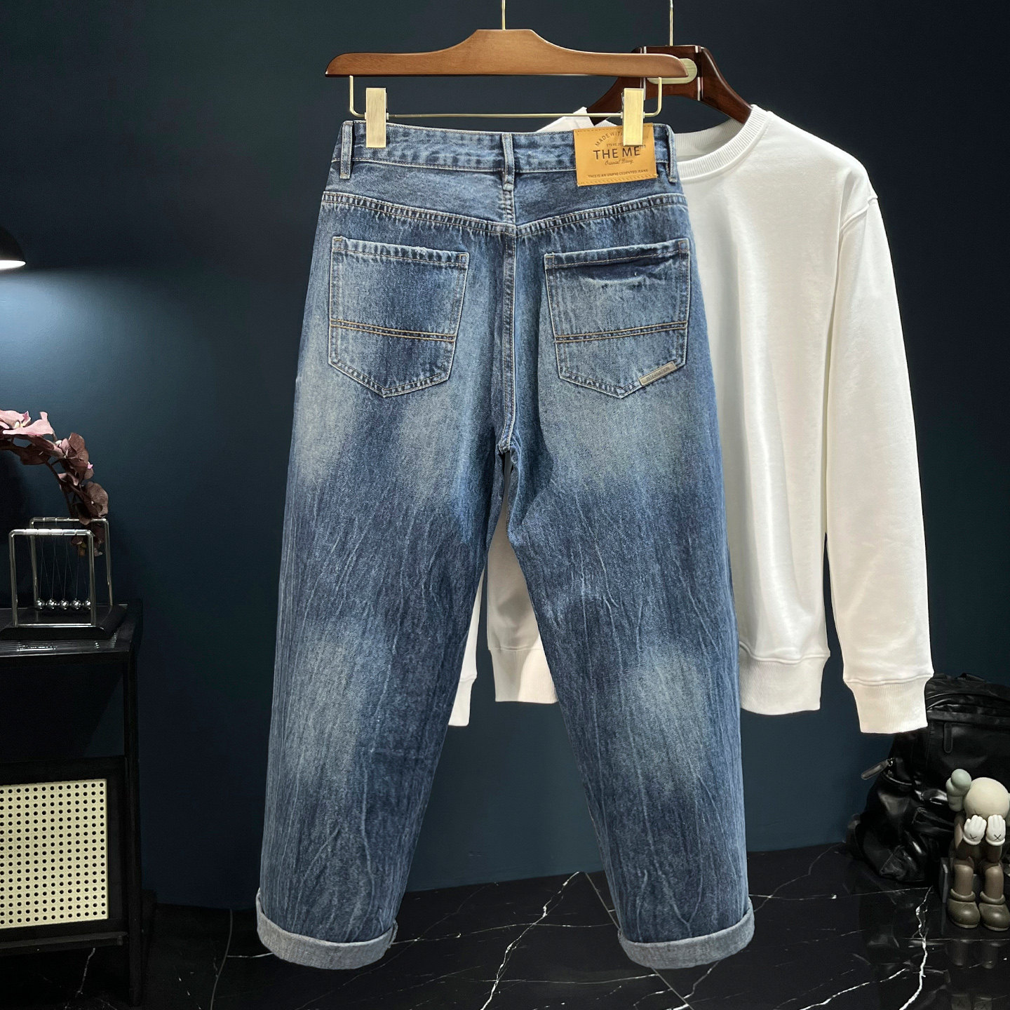 春季高端水洗蓝色牛仔裤男宽松2026年新款胖子直筒休闲长裤子潮流