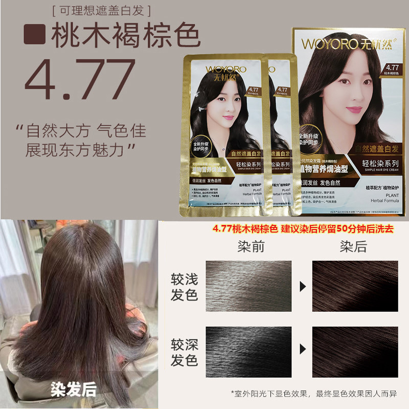 植物染发膏无忧然染发霜护发焗油泡泡染发剂小袋包装白发黑色正品