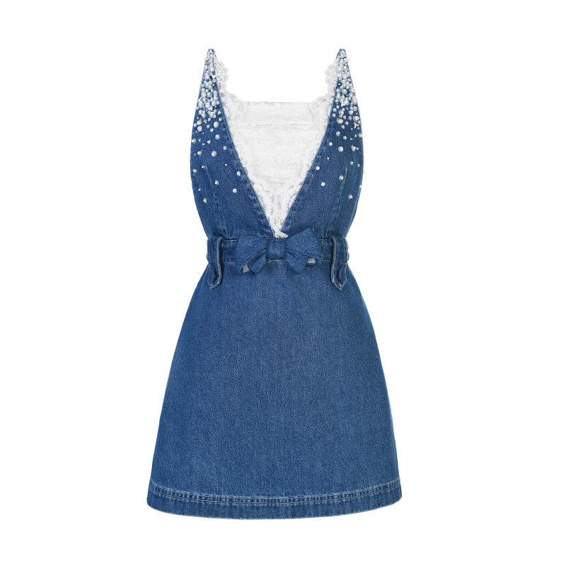 lefame拉飞姆时尚通勤百搭无袖小个子两件式牛仔连衣裙女
