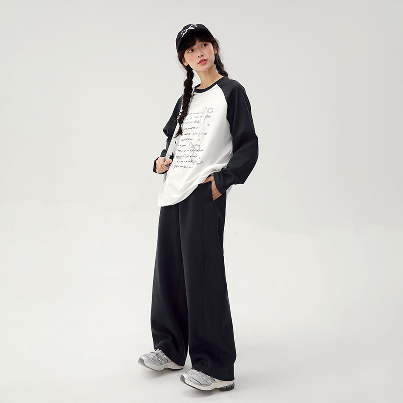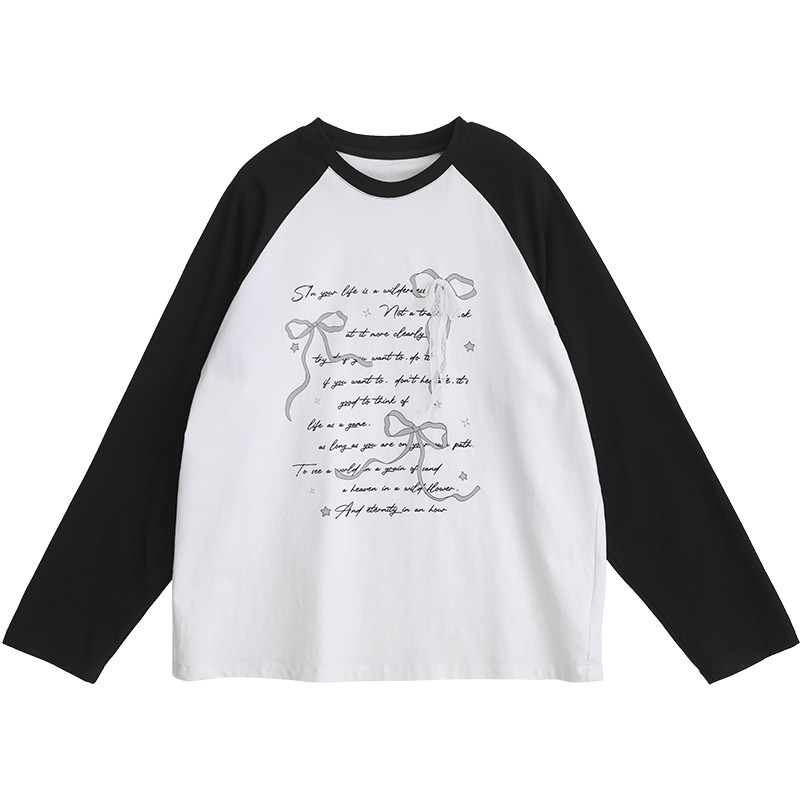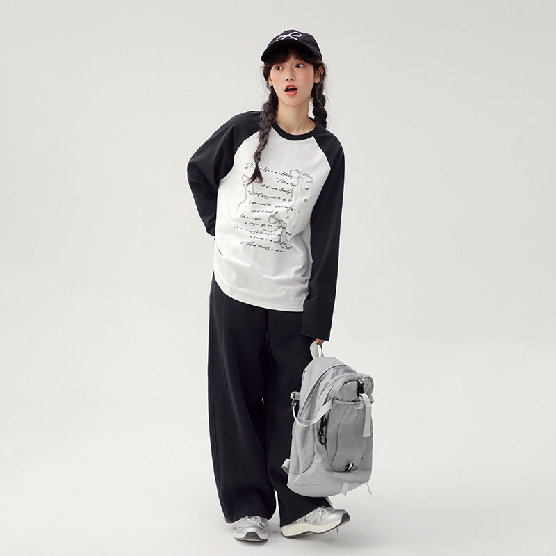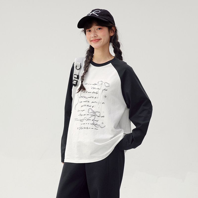诺诺公主S1N初中生撞色长袖T恤2026春季新款字母印花学生宽松上衣
