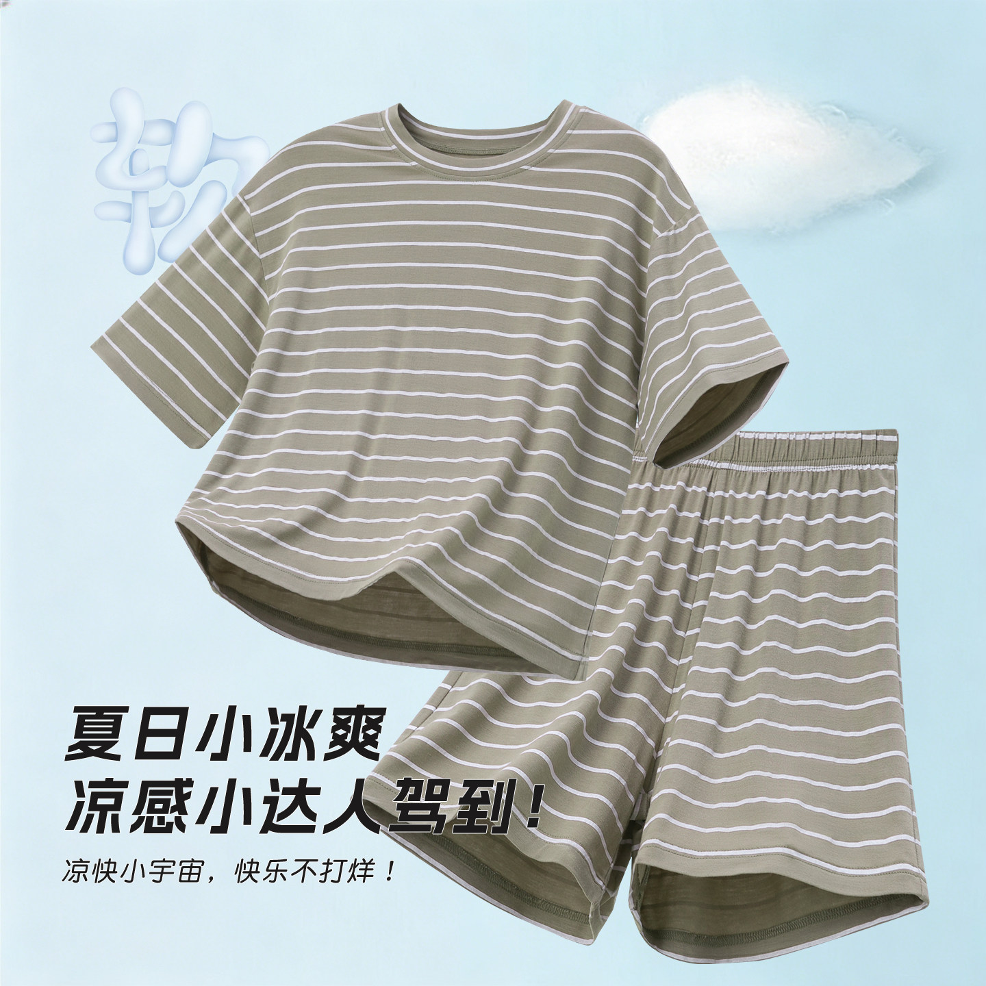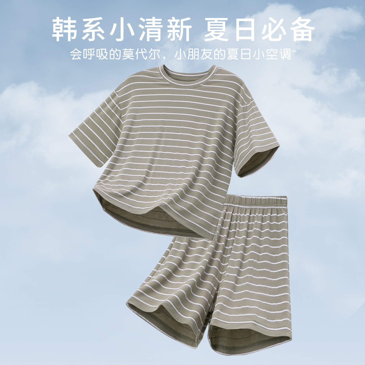儿童莫代尔套装男童睡衣2026新款夏青少年家居服短袖短裤条纹宽松
