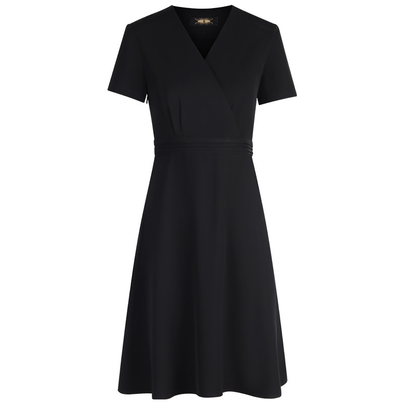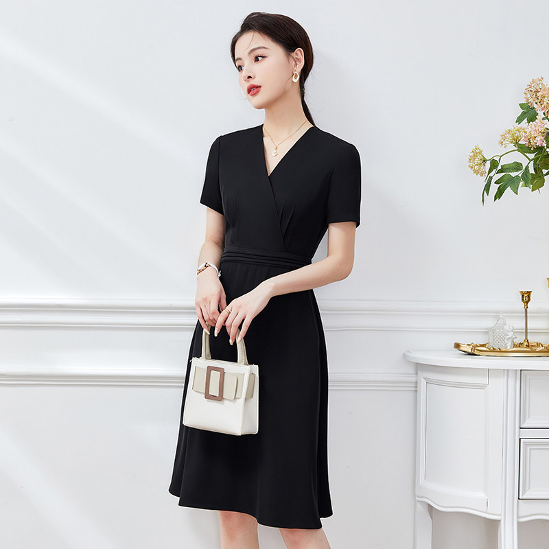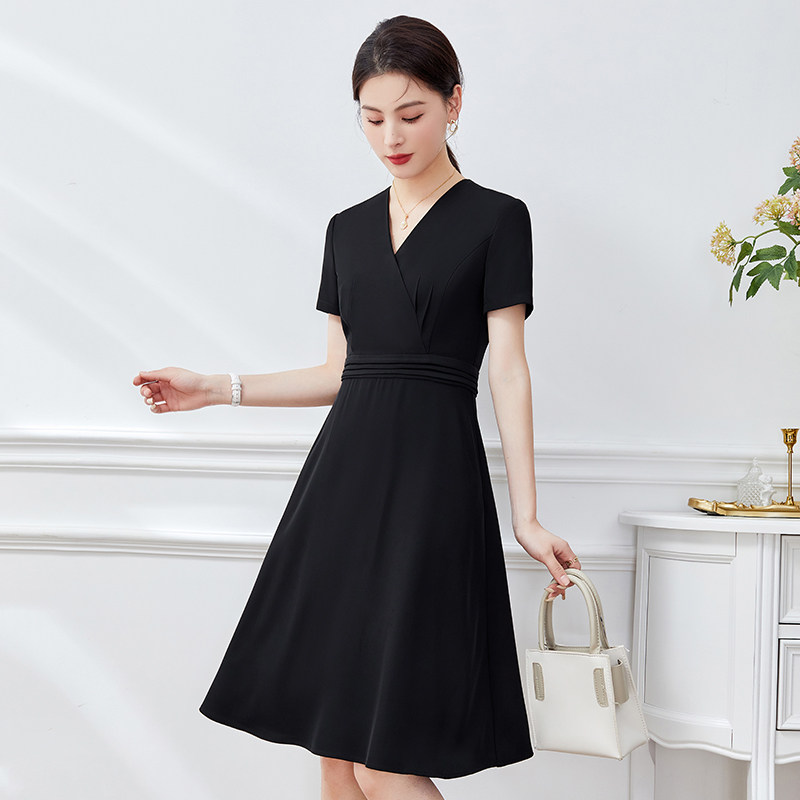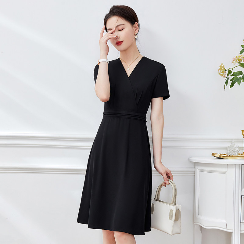 女款夏季短袖连衣裙黑色A字连身裙职业装OL通勤上班物业售楼部