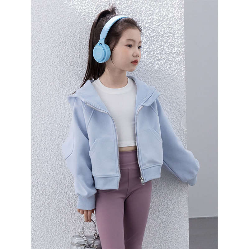 儿童lulu风短款连帽外套2025春款洋气女童宽松卫衣中大童休闲