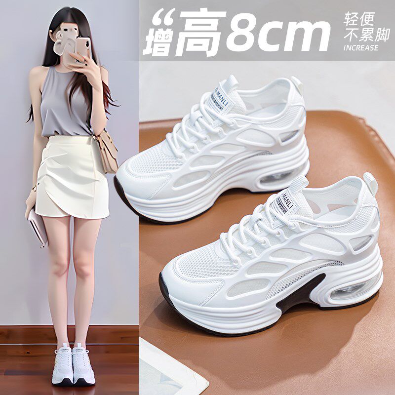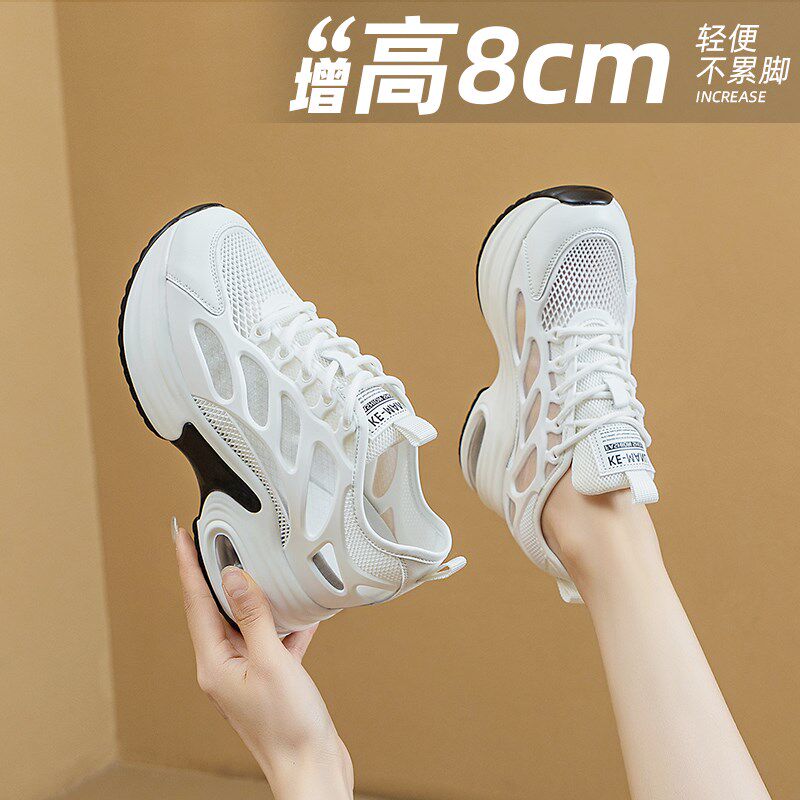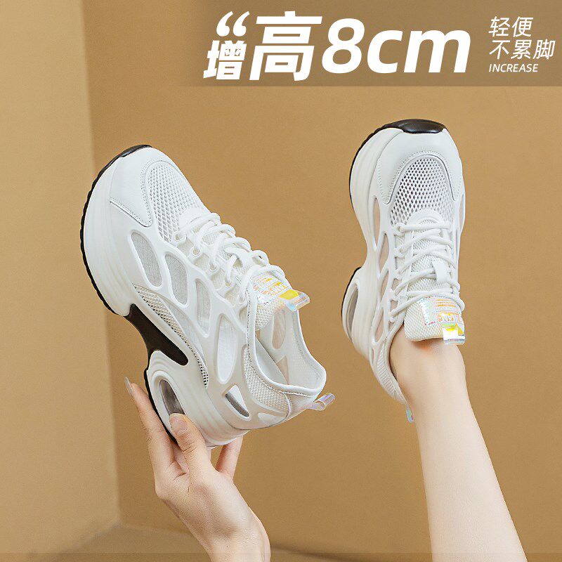 内增高老爹鞋女夏季2025新款厚底休闲鞋8公分女鞋网面透气小白鞋