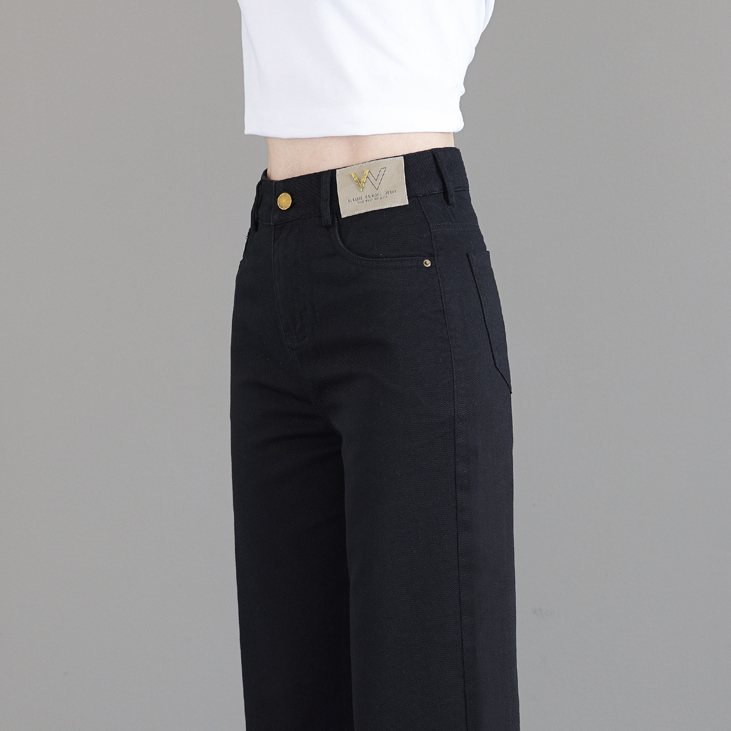 黑色窄版阔腿牛仔裤女2026春季新款垂感高腰显瘦纯棉休闲直筒裤子