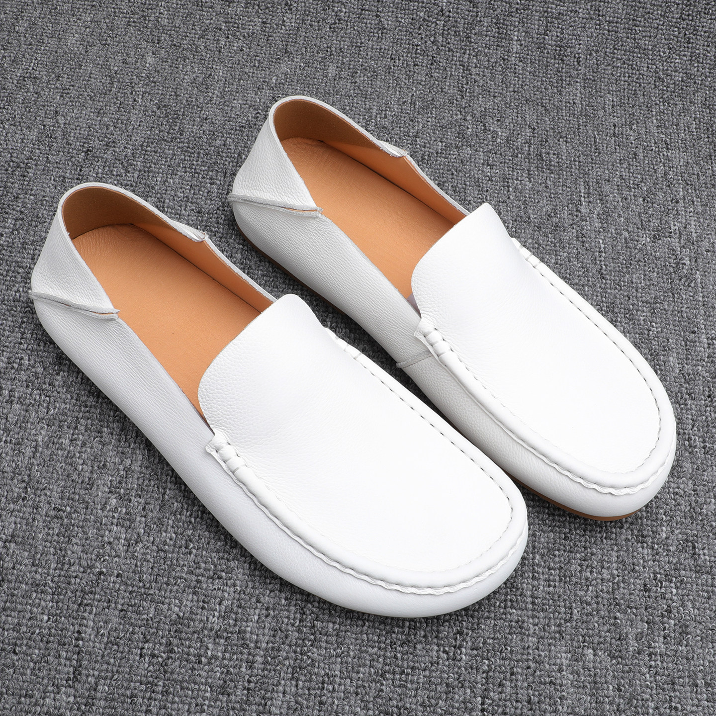一脚蹬平底豆豆鞋男款老钱风头层牛皮休闲百搭乐福鞋软底轻便男鞋