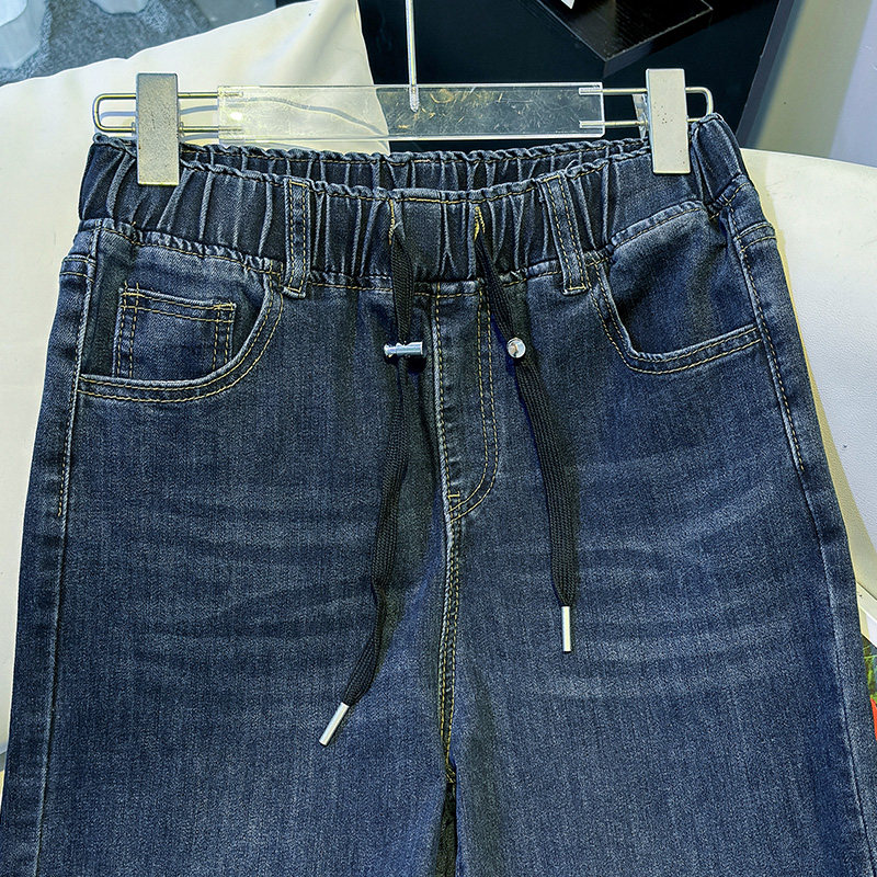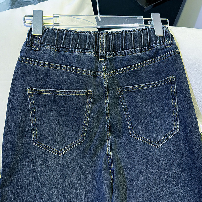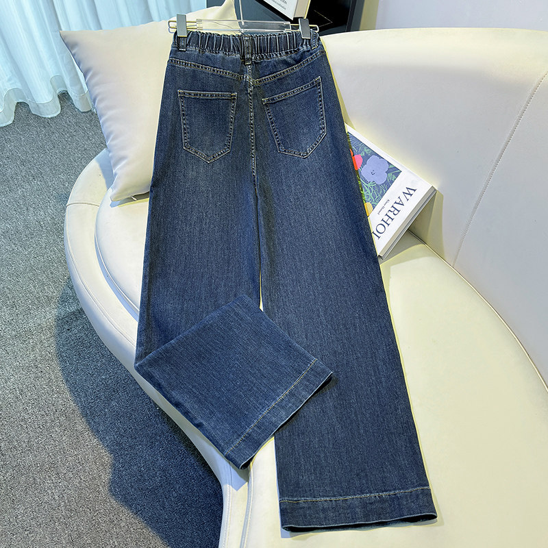 大码直筒牛仔裤女春季2026新款垂感宽松阔腿裤松紧腰弹力拖地裤女