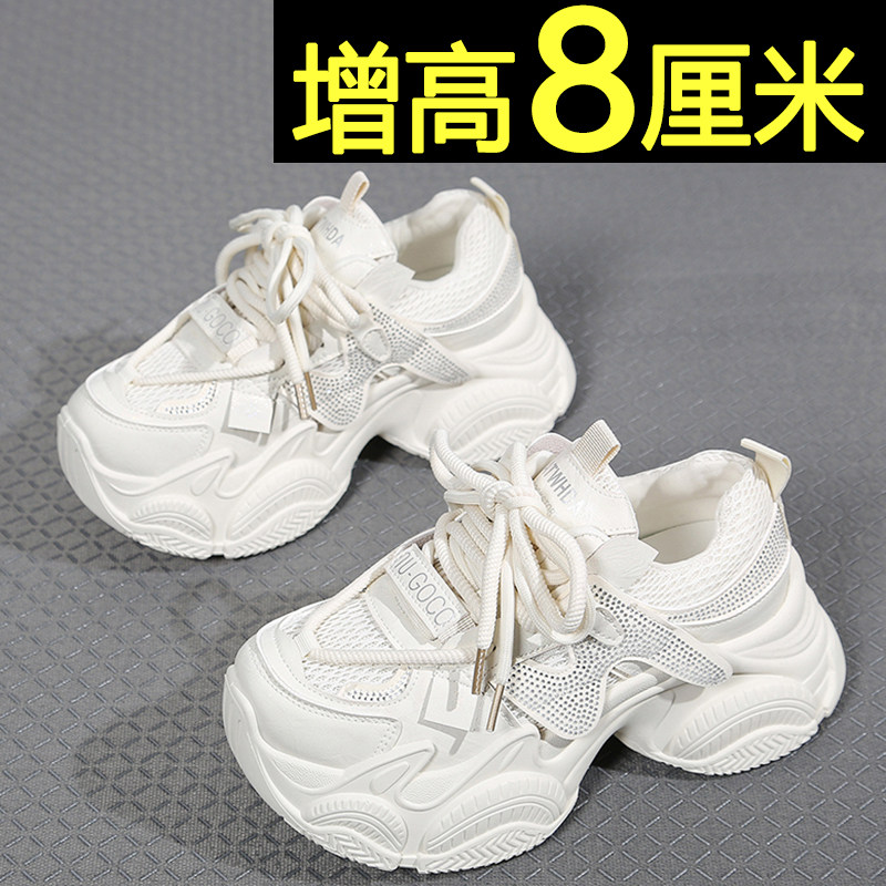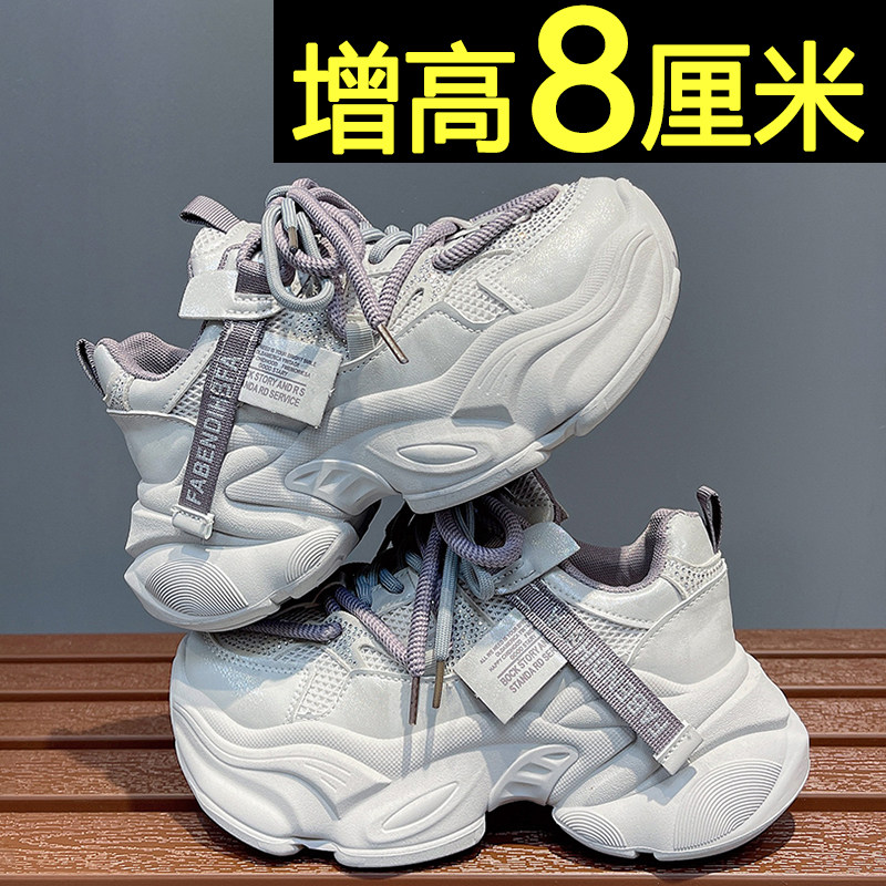 小白鞋女款2026新款百搭透气不累脚内增高老爹鞋运动休闲厚底女鞋