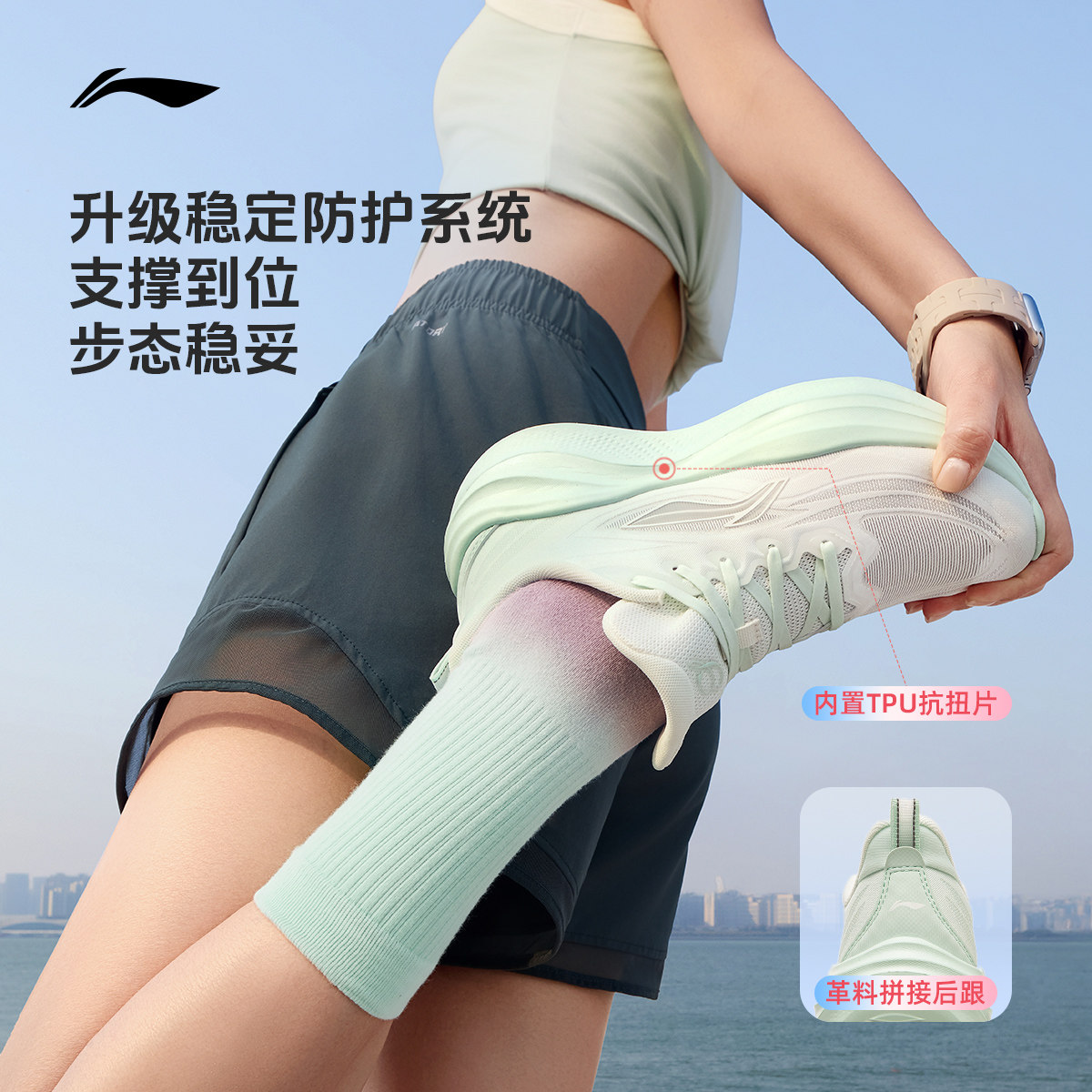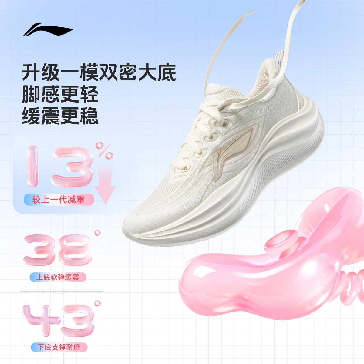 李宁凌波2 | 跑步鞋女款轻便减震软底2026新款厚底增高休闲运动鞋