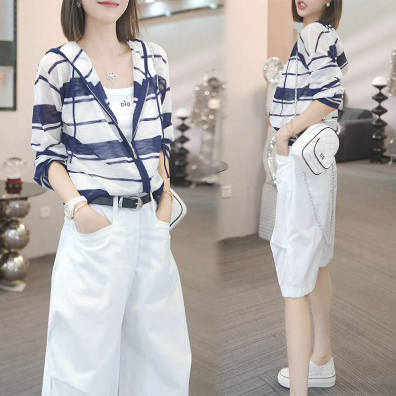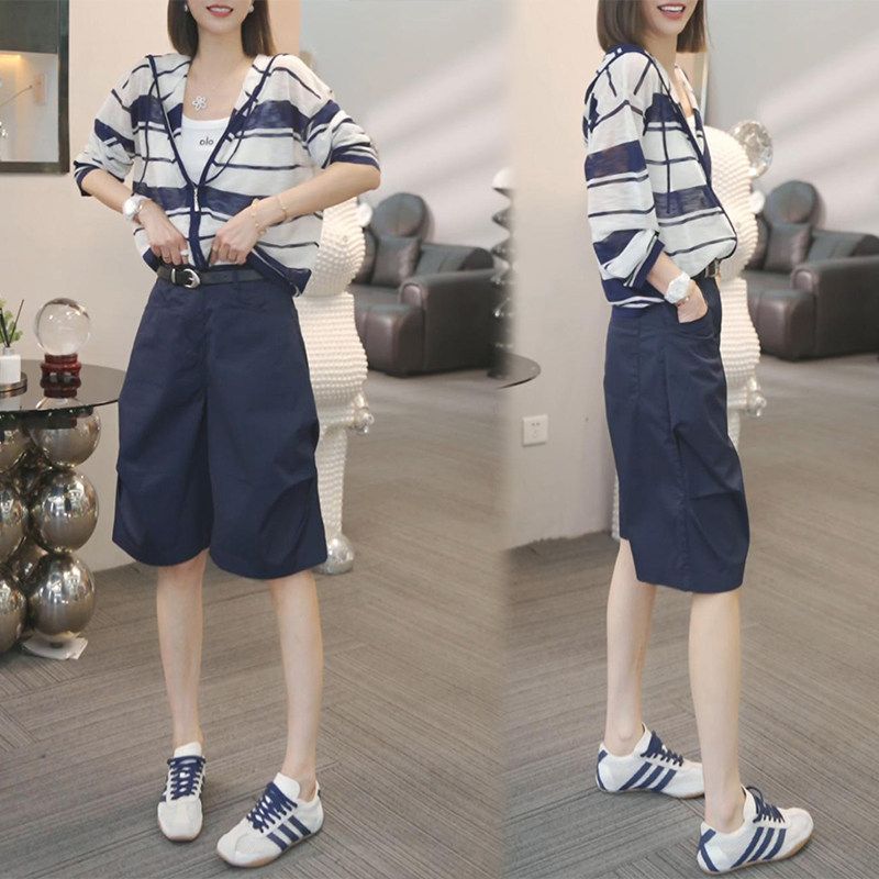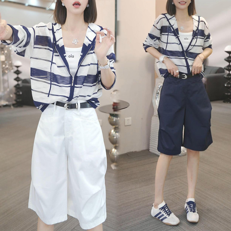 一整套ootd穿搭减龄时尚套装女2026夏季新款条纹针织上衣五分裤子