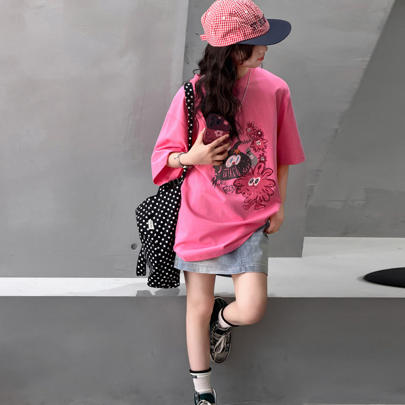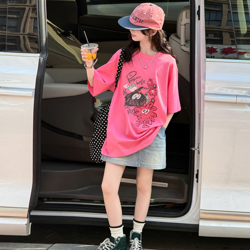 女童夏季t恤2026新款洋气儿童多巴胺短袖初中生宽松纯棉上衣薄款