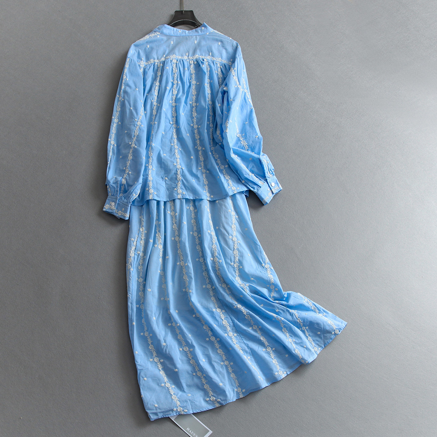 撞色重工刺绣宽松衬衫裙套装2026春季新款吊带长裙女裙连衣裙E182