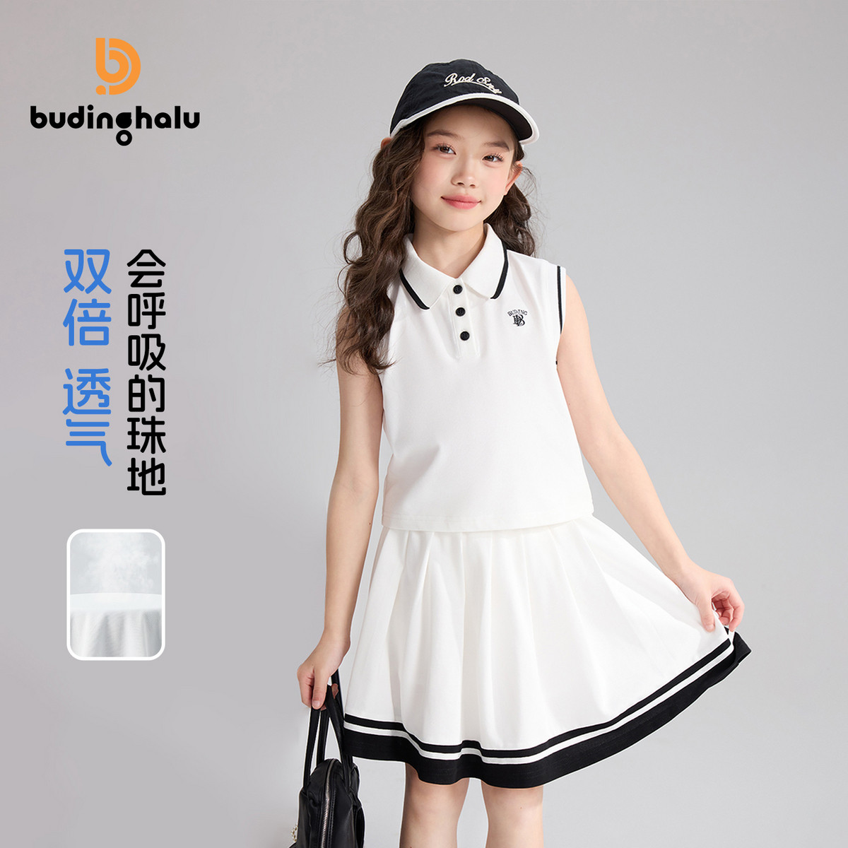 布丁哈鲁夏装童装女童韩系上衣2026夏季新款儿童透气运动套装