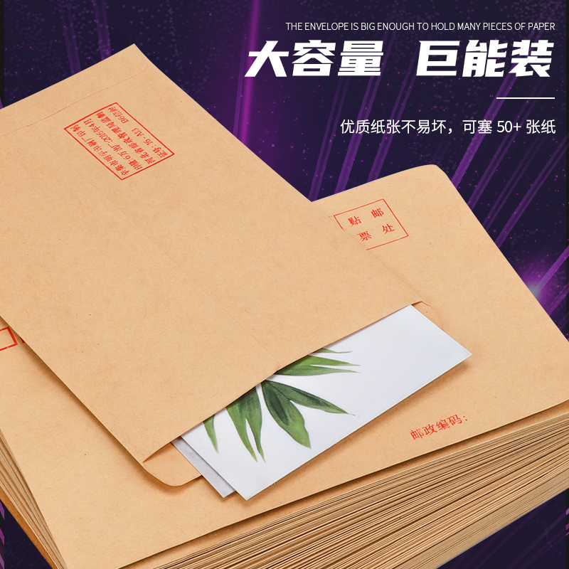 500个加厚牛皮纸信封信纸简约邮局标准白黄色增值税发票专用工资