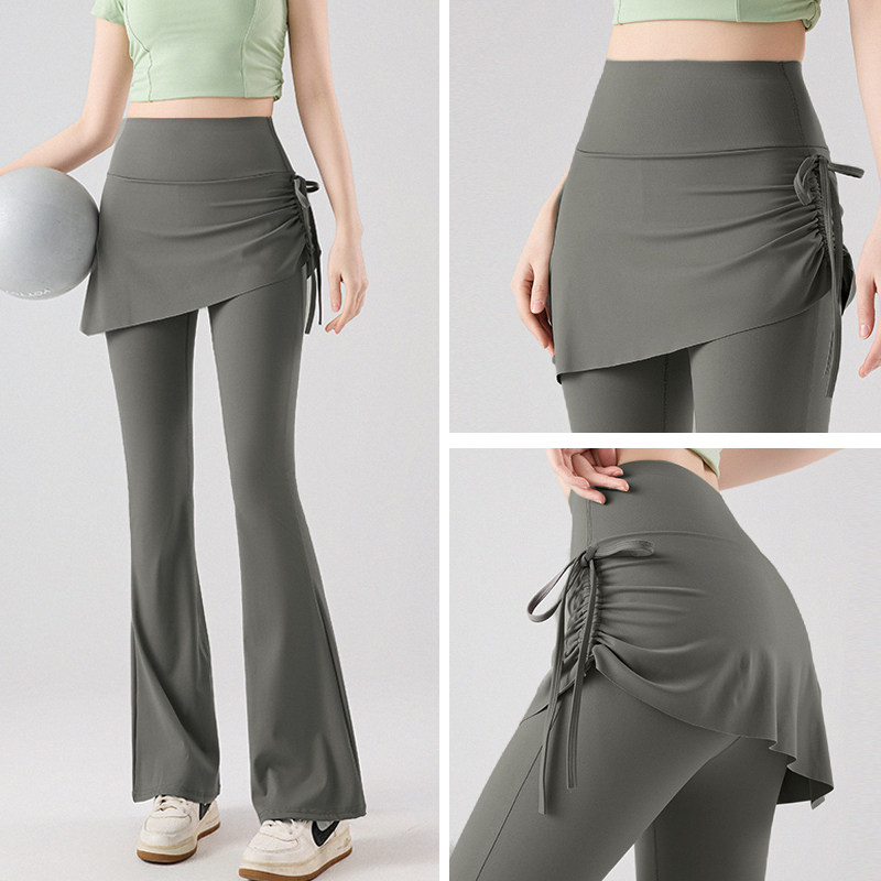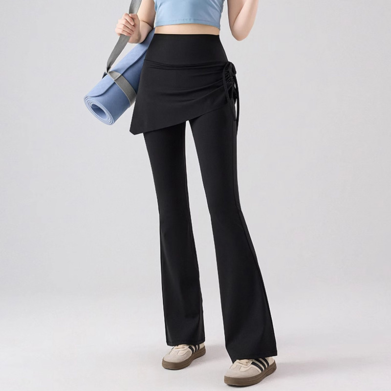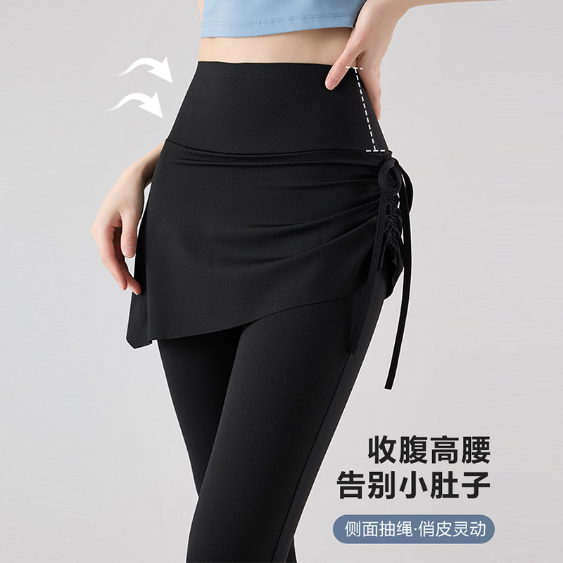 假两件瑜伽微喇裙裤女春季遮挡裙鲨鱼裤高腰提臀紧身防走光喇叭裤