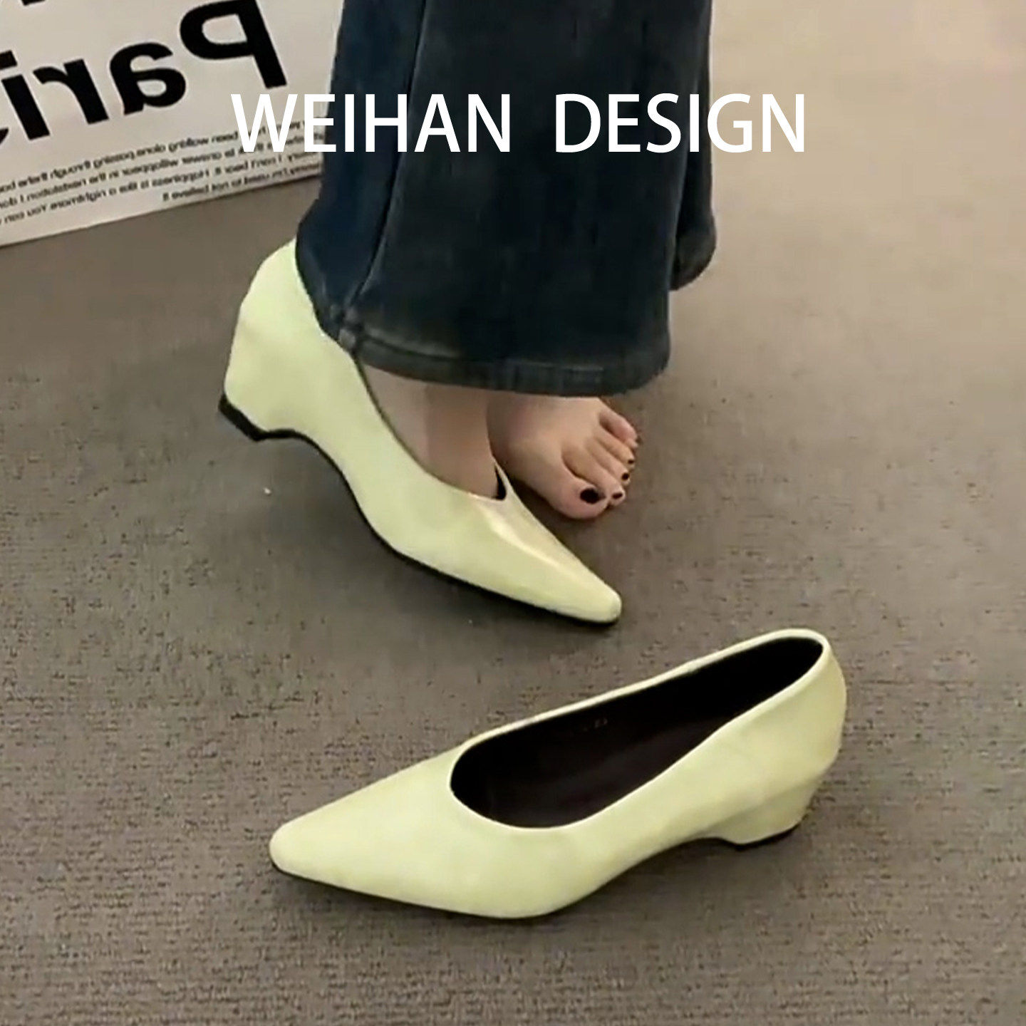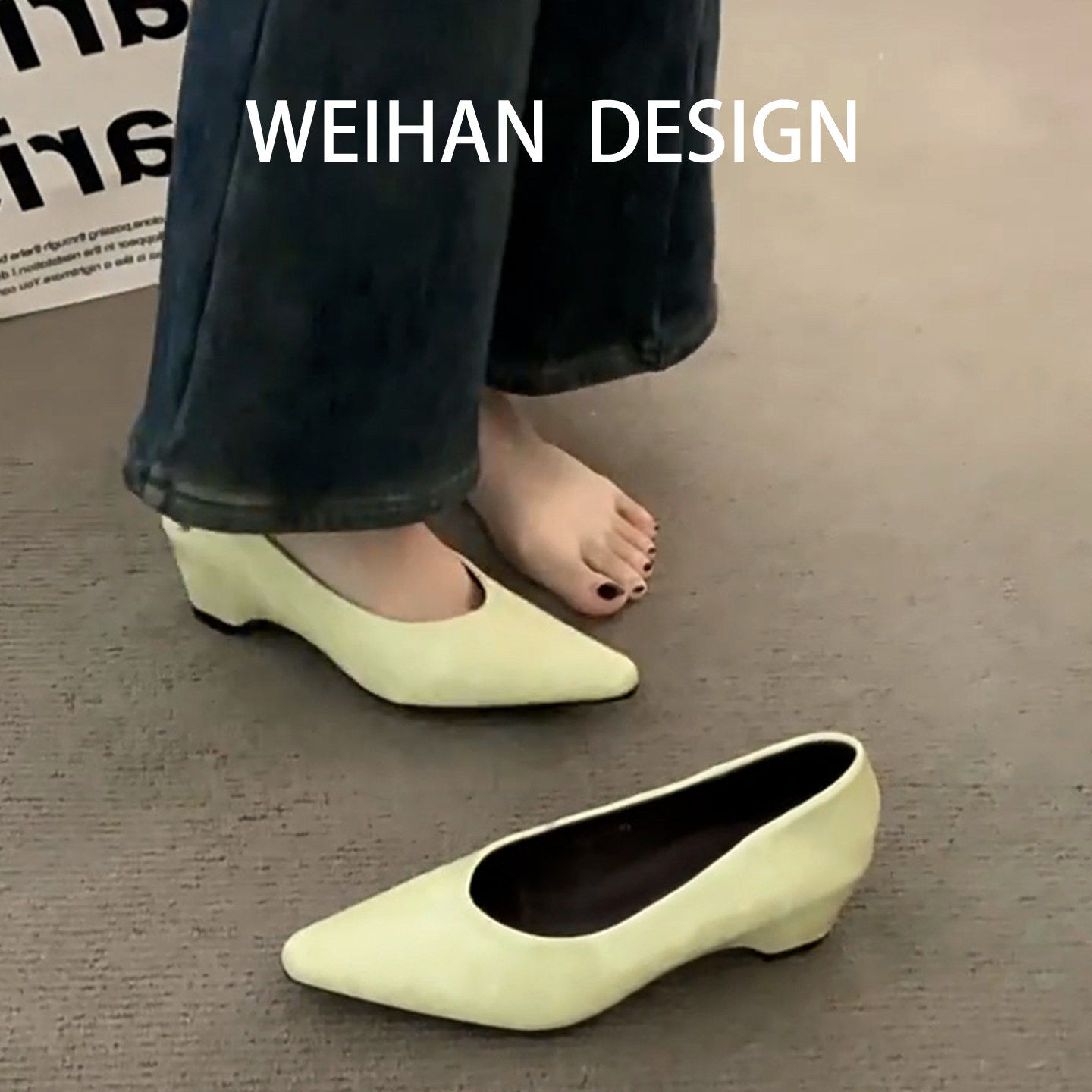 羊皮版!跛跟内增高真皮尖头包鞋法式高级感玛丽珍女鞋不累脚瓢鞋