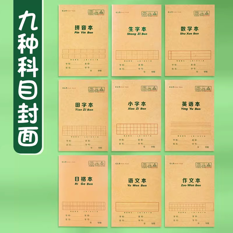 司马彦25K小学生加厚牛皮纸作业本子拼音本语文本生字本英语本数学本作文本本10本硬皮米黄色护眼田字计算