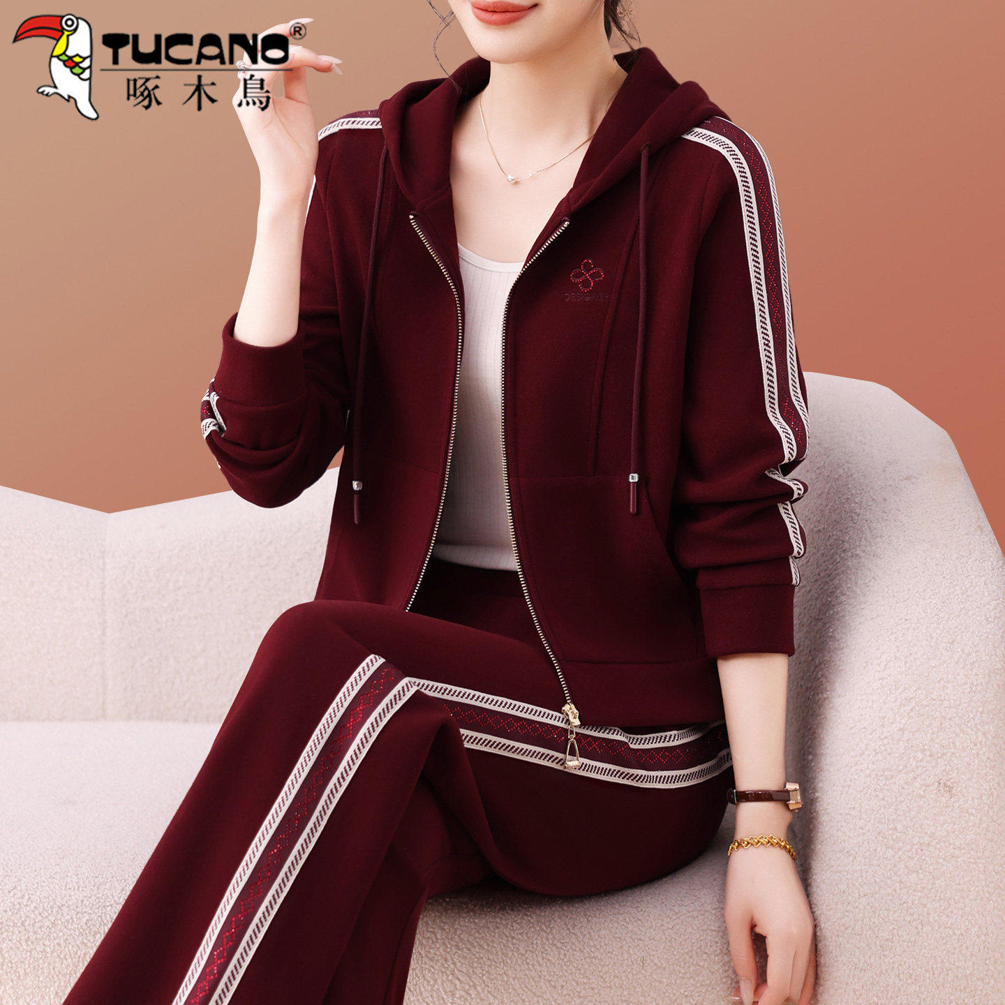 啄木鸟妈妈时尚运动服套装女春秋2026新款时髦减龄休闲开衫两件套