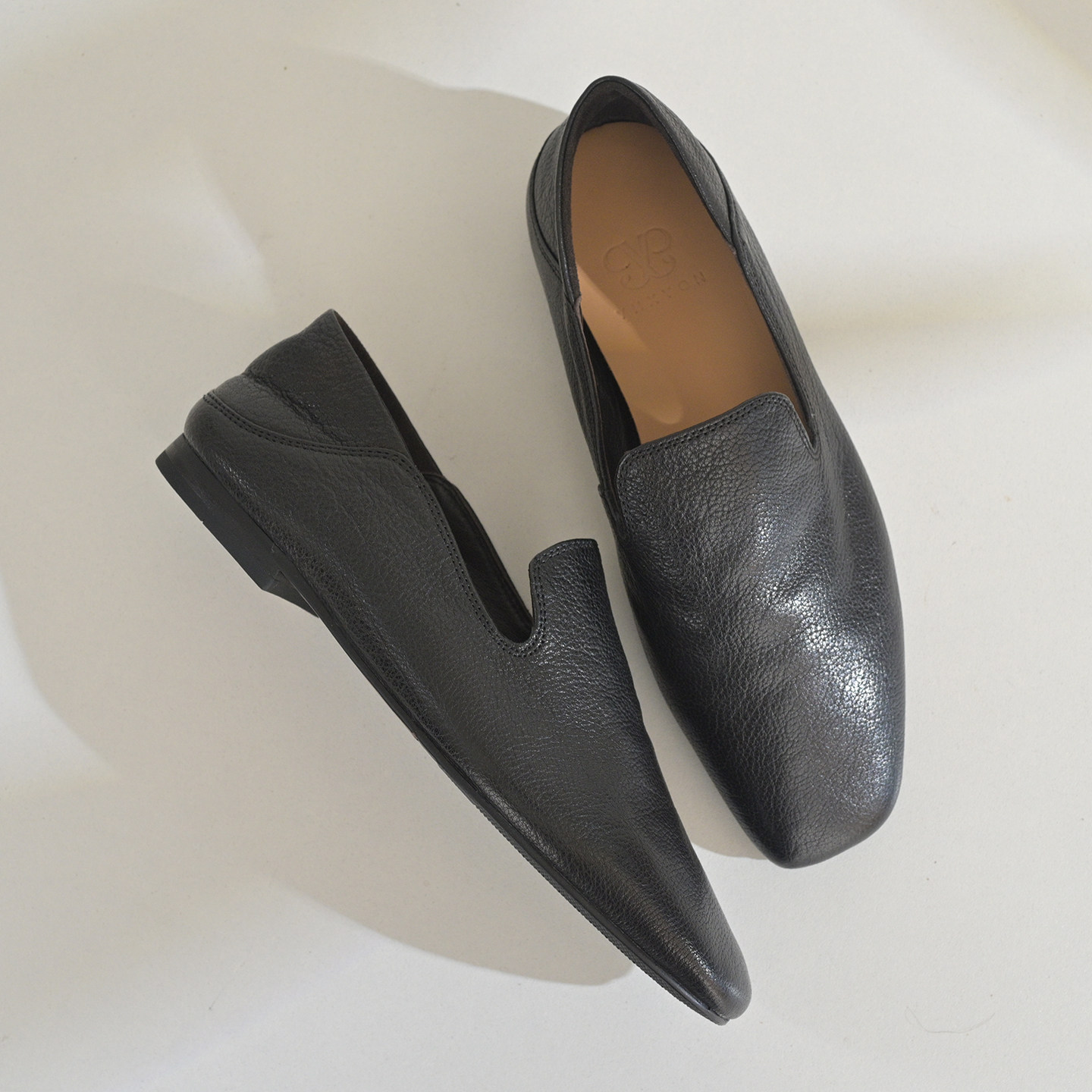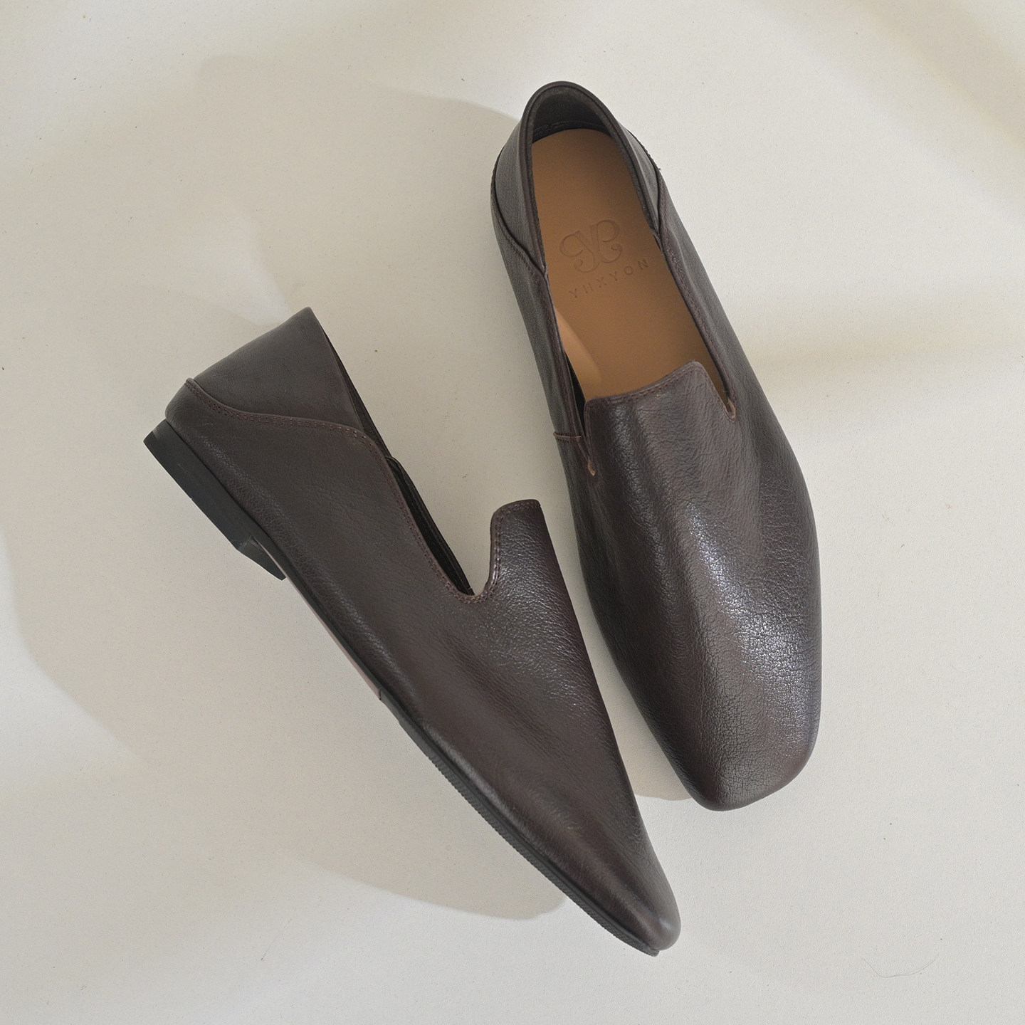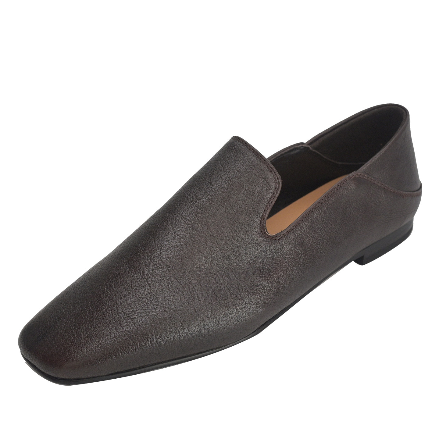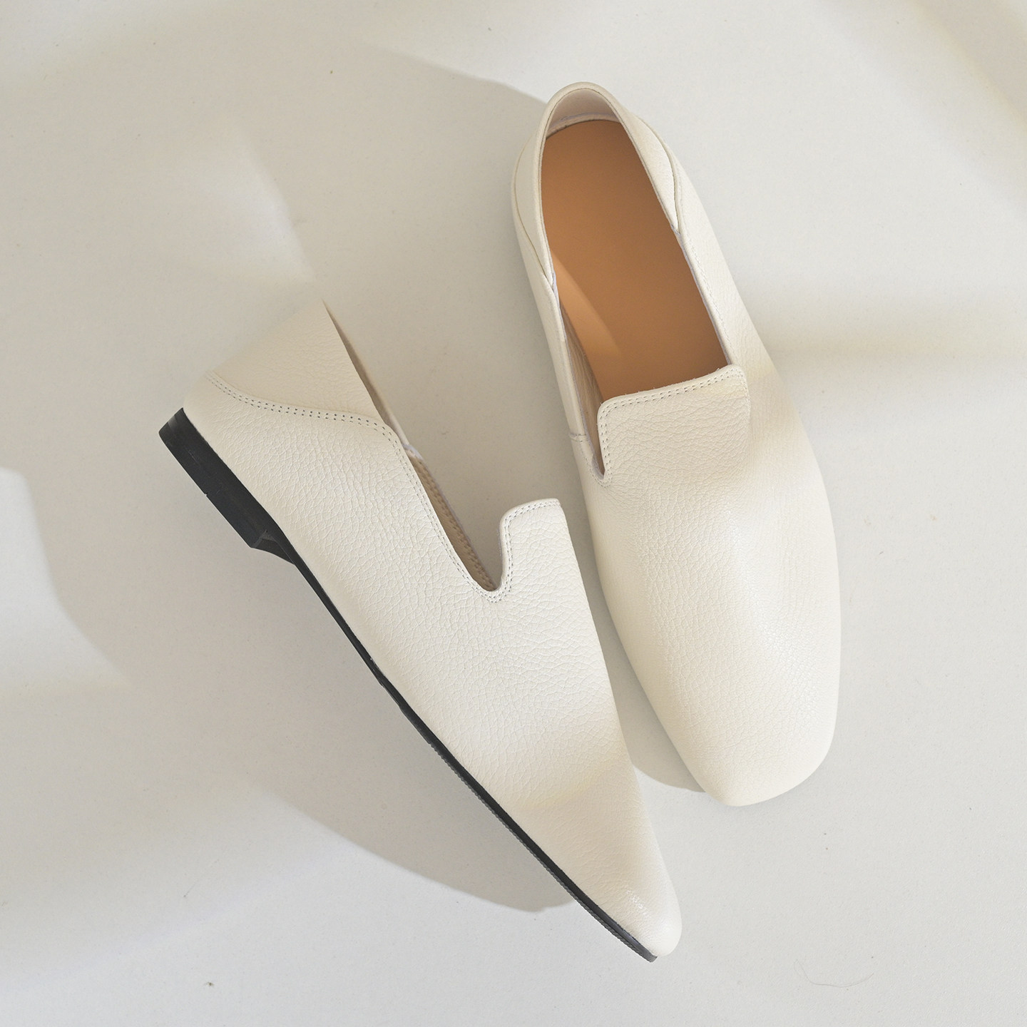 步享头层胎牛皮深口单鞋女软底通勤方头平底真皮一脚蹬豆豆鞋白色