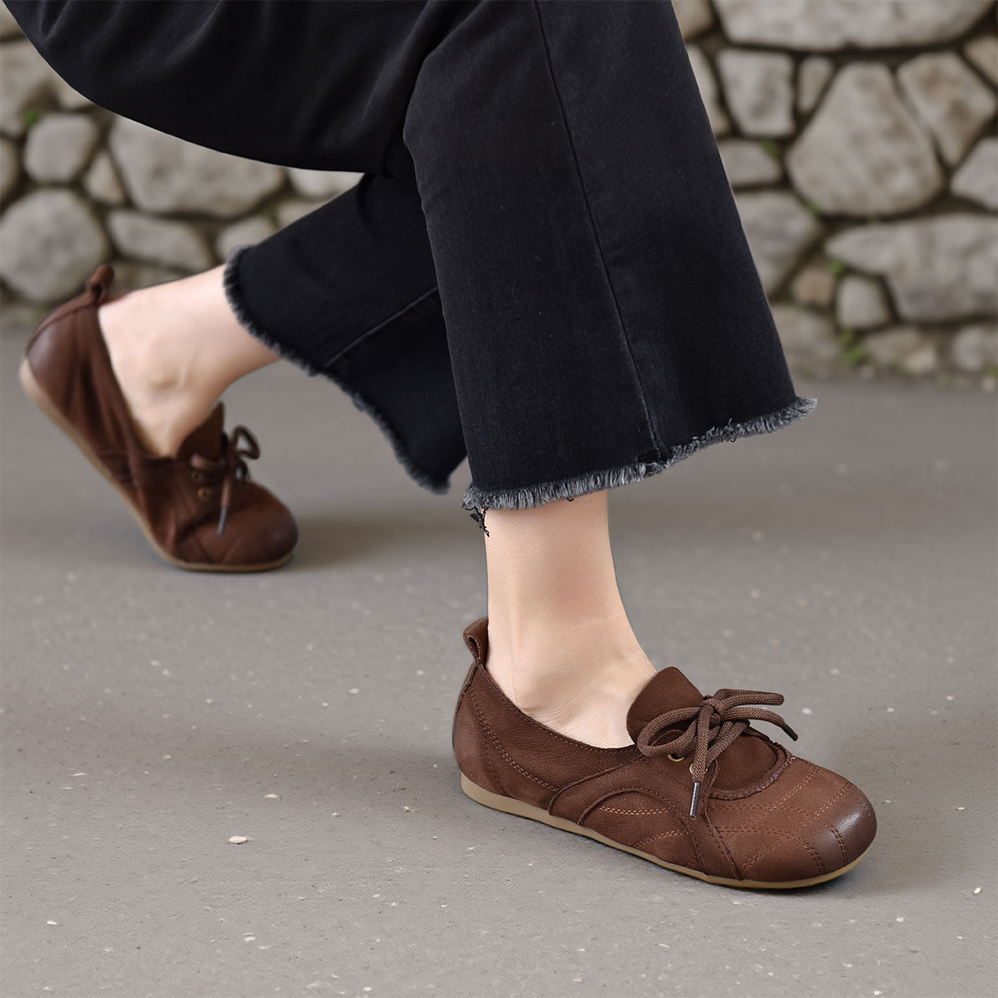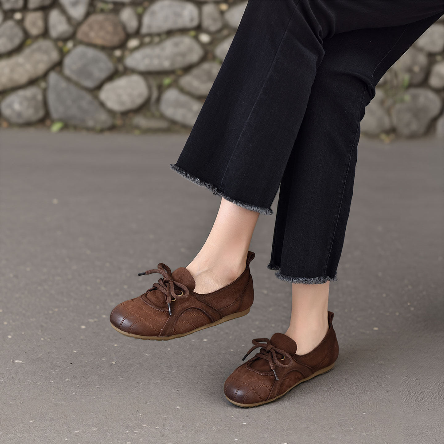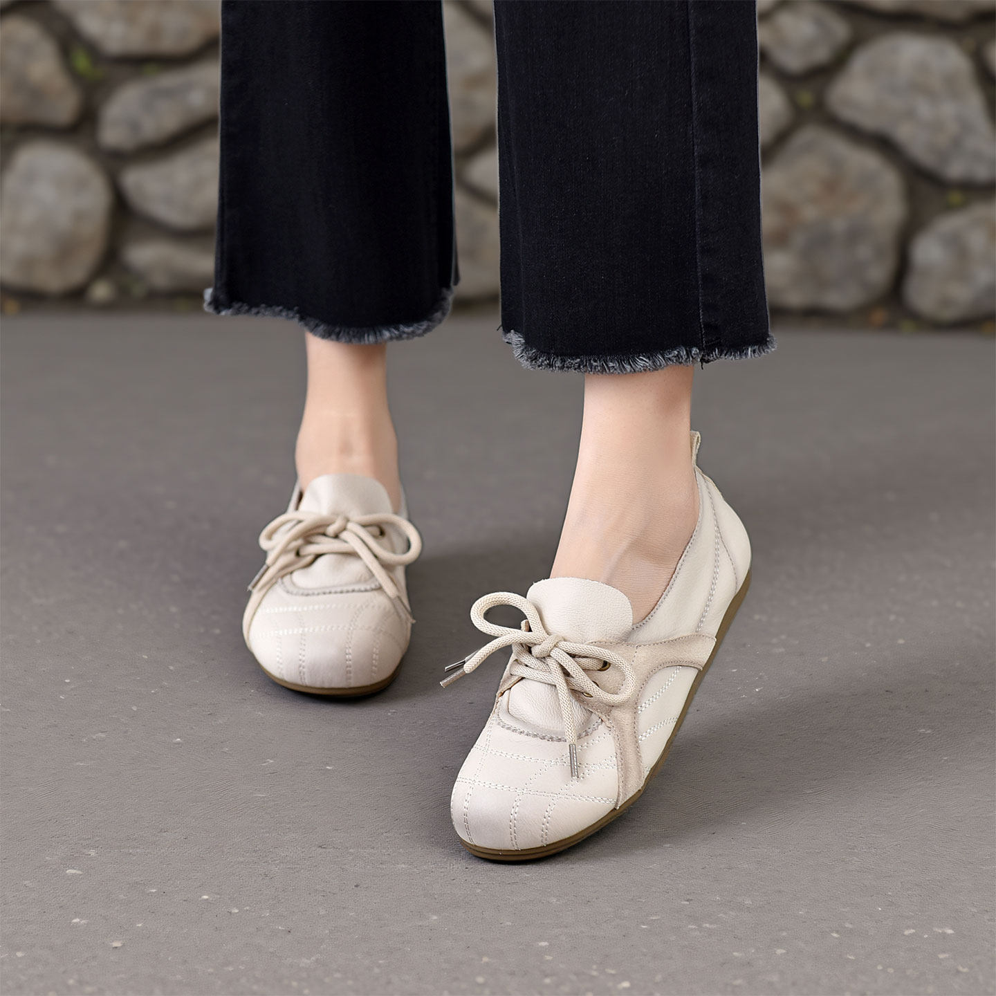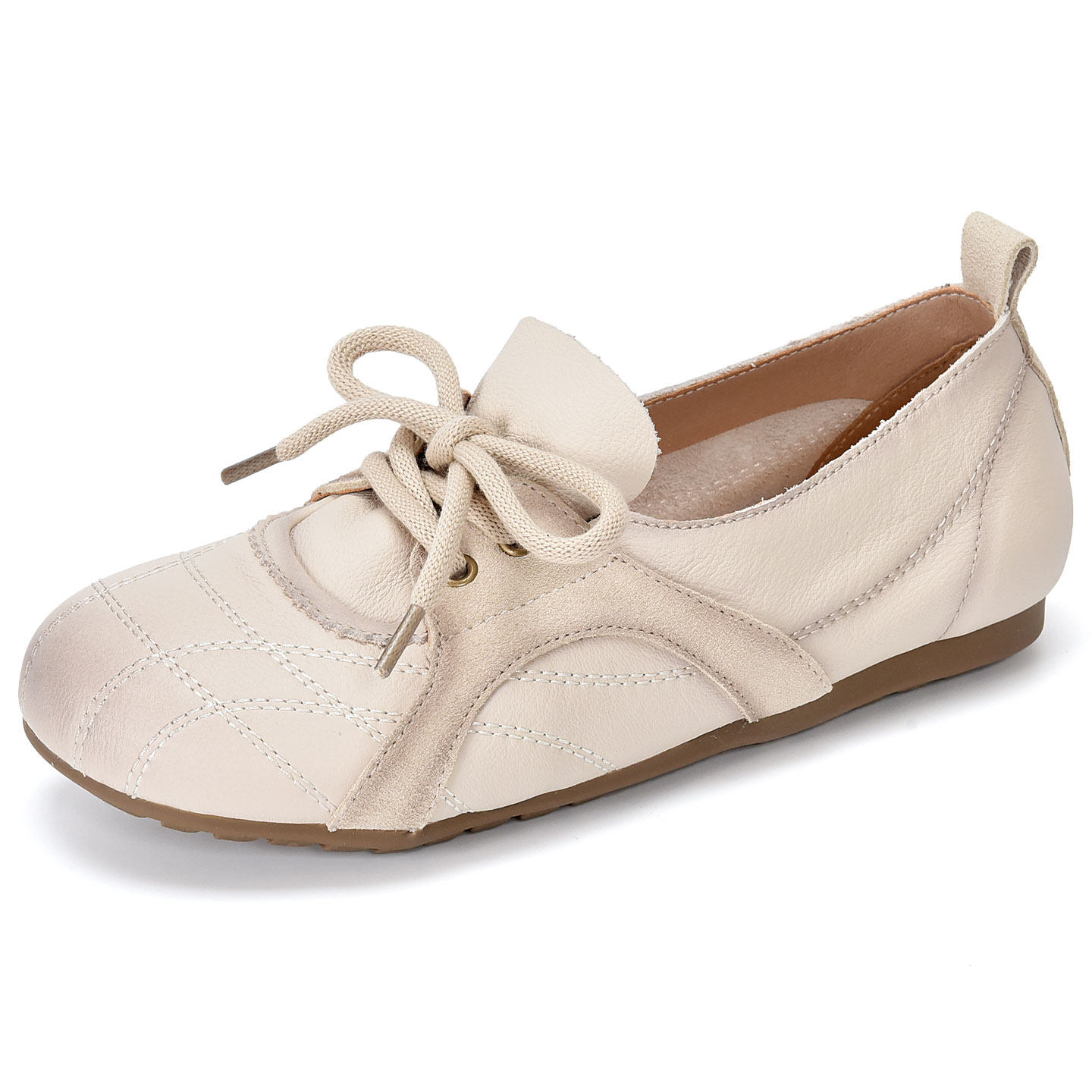 四起哥2026春真皮乐福鞋女休闲系带圆头舒适百搭头层牛皮豆豆鞋潮